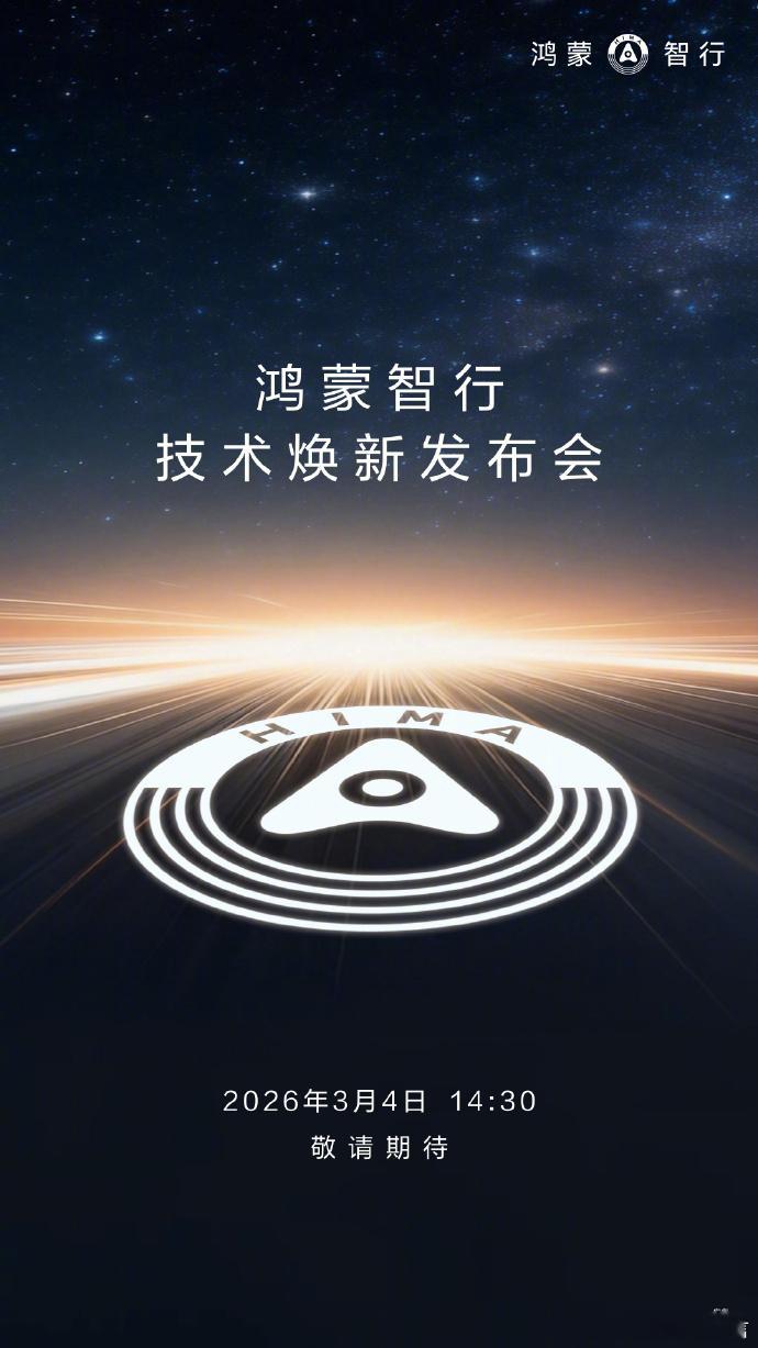 华为开年发布会时间官宣鸿蒙智行技术焕新发布会定档3月4日 这是鸿蒙智行马年的首场发布会,预计鸿蒙智行将发布多项重磅技术的焕新,我个人猜想主要集中在以下几个方面:辅助驾驶方面:鸿蒙智行将发布多项 L3、L3+ 智驾的重磅技术。ADS 4.0 Pro 增强版预计将于 2026 年第一季度开启 OTA 推送,预计这个会上也会提到。车控方面:途灵平台会有MPV车型相关的技术发布,首款MPV智界V9上市越来越近了。智舱方面肯定会有新的功能场景出来。产品方面:智界V9大概率要开启预售。作为鸿蒙智行的首款MPV,这款车现在热度非常高。智界现在兵强马壮,这款产品也是下了大功夫,希望能一炮而红。尊界S900要是现场露个脸那就太有惊喜了,不过估计应该是放进彩蛋里,发条视频先吸引下眼球,活动现场的焦点应该会聚焦在智界V9上。
