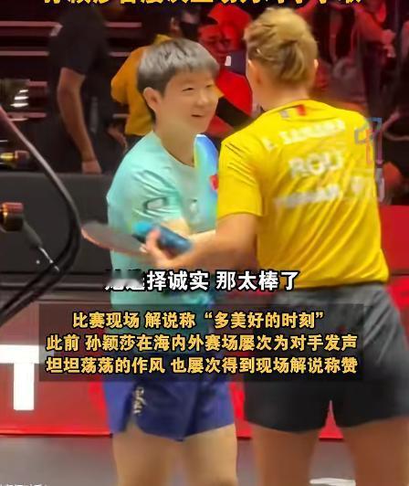 坦坦荡荡! 球品人品都是上佳! 孙颖莎主动提醒对手申诉后,却被裁判以"拖延比赛"为由处罚,好在最后3:1获胜! 比赛现场就在新加坡,孙颖莎对战欧洲老将萨马拉,场面一开始就很紧张。第三局孙颖莎8-5领先,可没想到的是,她擦汗、整理一下球拍,裁判直接丢出黄牌,说她拖慢比赛节奏。 全场观众都有些懵,这动作在乒乓球圈里太正常了,大多数选手都会有类似调整,结果这次却被抓了典型,让人疑惑的是,前面萨马拉和教练沟通了好几次,动作拖得比孙颖莎还慢,裁判却没管,这种判罚角度,一下把现场气氛搞得很怪。 其实,刚刚几分钟之前,孙颖莎还做了一件颇受称赞的事。萨马拉发球被指违规,一时手足无措,准备申诉但没反应过来。 孙颖莎主动提醒对手可以用鹰眼挑战,为了让比赛公平,她压根没考虑自己的利益,让网友直呼她是运动员里的“侠客”。这种大气和体育精神,是中国选手多年养成的态度,现场观众对她的举动反应很热烈,觉得她赢得的不只是比分,更是人品。 这黄牌出得太突兀,也很容易让人联想到裁判是刻意“找补”,以前类似的情况也曾发生过。在2025年横滨赛场,孙颖莎刚和日本选手打削球大战,想调整一下喘口气,也被裁判警告拖延。 那场比赛一样,裁判也没给她任何提醒,直接就扣帽子,中国优秀运动员屡屡遇到这种执法上的不公平,给人感觉是规则本身变得越来越主观,容易被个别裁判把个人情绪带到判罚里。 不过,孙颖莎没因为裁判这点小动作影响心态。她没有和裁判争执,没有在场上发泄,她稳稳地看着球拍,深吸一口气,继续发挥技术实力。 最后,她用一转身的速度、一拍的精度,掌控全场节奏,用实际表现回应了质疑,比分定格在3-1,所有得分都干净明白,毫无争议。 赛后,孙颖莎和萨马拉握手致意,两人都展示出职业运动员的高度,萨马拉对孙颖莎的举动很认可,对手之间尊重远远超过一步两步。 孙颖莎用行动告诉大家,真正的强者不仅靠技术,更靠心态和人品,每次都能化不利环境为动力,面对无理判罚时,孙颖莎依旧用胜利和细节去展现中国运动员的格局,这种自信和底气让人敬佩。 这场比赛,不只是一次竞技较量,更像是体育精神的公开课,孙颖莎不仅赢得了胜利,还赢得了更多人的认可和尊重。她让大家看到,中国球员不仅专业、还厚道、不靠运气,更不会在压力下失控。 即便规则偶尔偏向,孙颖莎用一颗坦荡的心和扎实的能力,把中国乒乓球的形象越擦越亮。