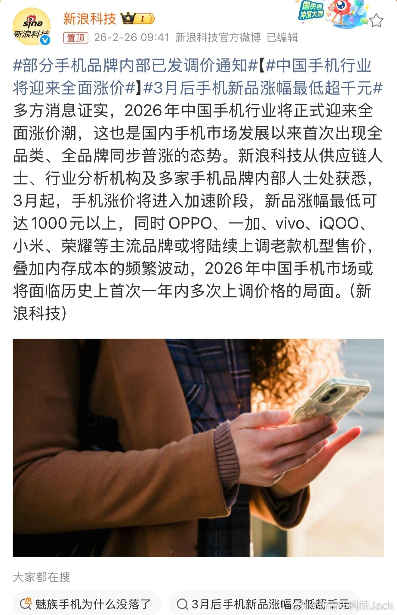 涨价是板上钉钉的了,其实冲击最大的是走量千元机还有主力旗舰这两个档位。很多小品牌根本扛不住这波冲击,千元机涨价300-500,中端机涨价500-800,旗舰机涨价800-1500