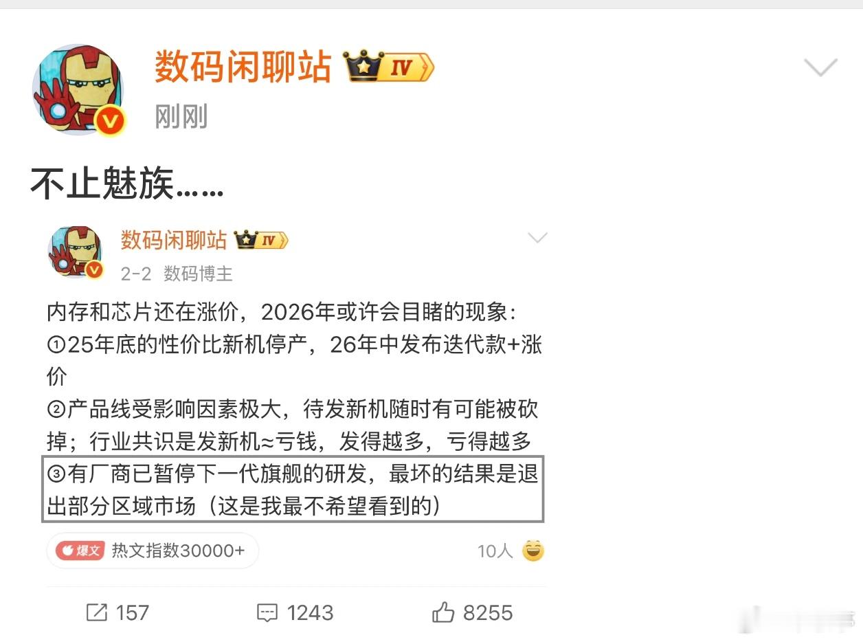 魅族受内存和芯片涨价影响,手机品牌都压力山大。据说有长期暂停下一代旗舰研发,不止魅族!那么大家觉得哪个小品牌或尾部品牌停更了旗舰?中国手机行业将迎来全面涨价