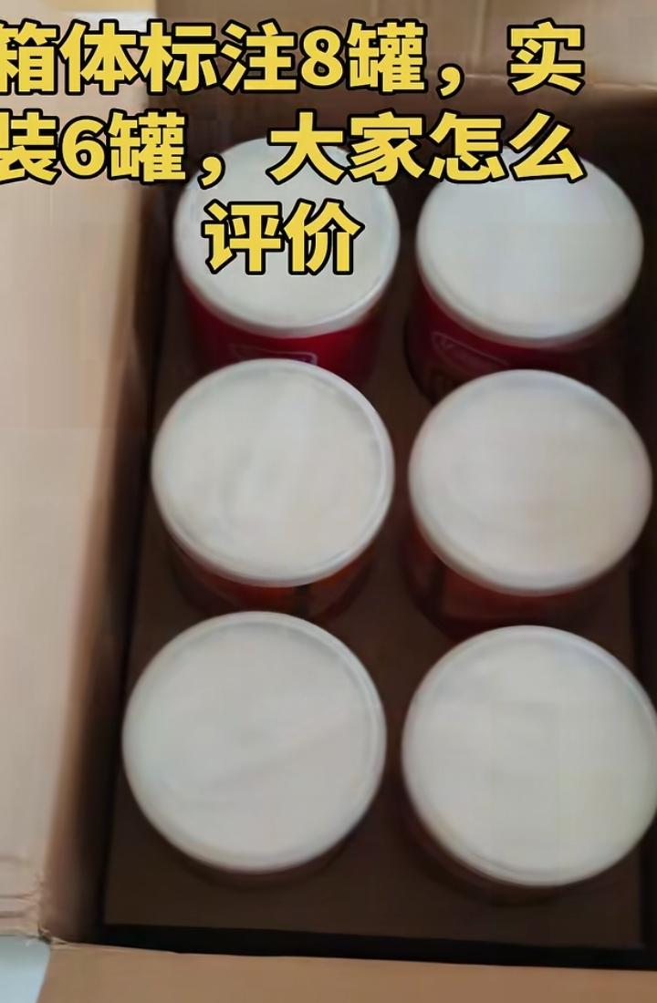 八宝粥礼盒写8罐只给6罐,网友调侃:“盒子上不还印着2罐么”? 新年送礼谁没送过八宝粥?都知道礼盒包装容易缩水,谁能想到实际数量与标注不符? 看商标还是大品牌,究竟是哪个环节出了问题,箱子上写着8罐,结果里面是6罐,虽说大家过年习惯无脑送礼,但是也不能真拿消费者当傻瓜糊弄呀。