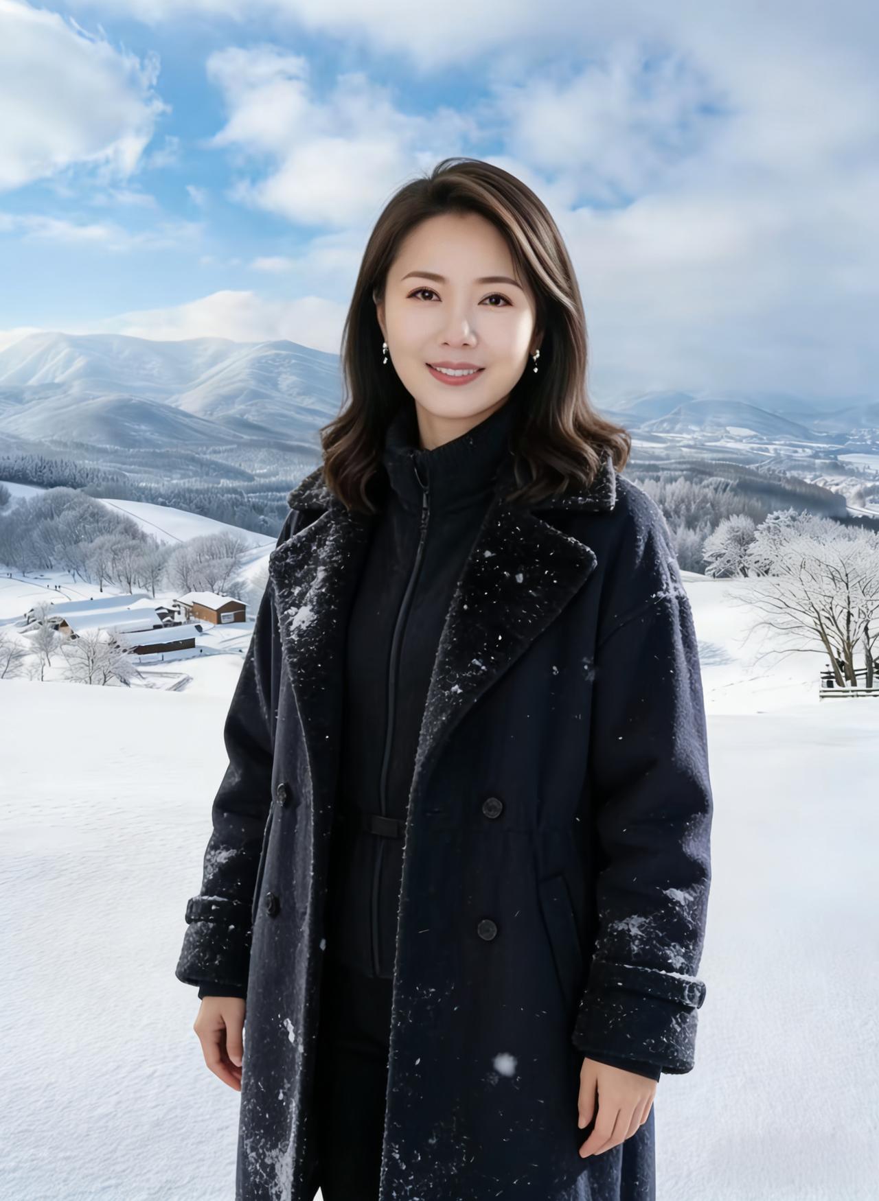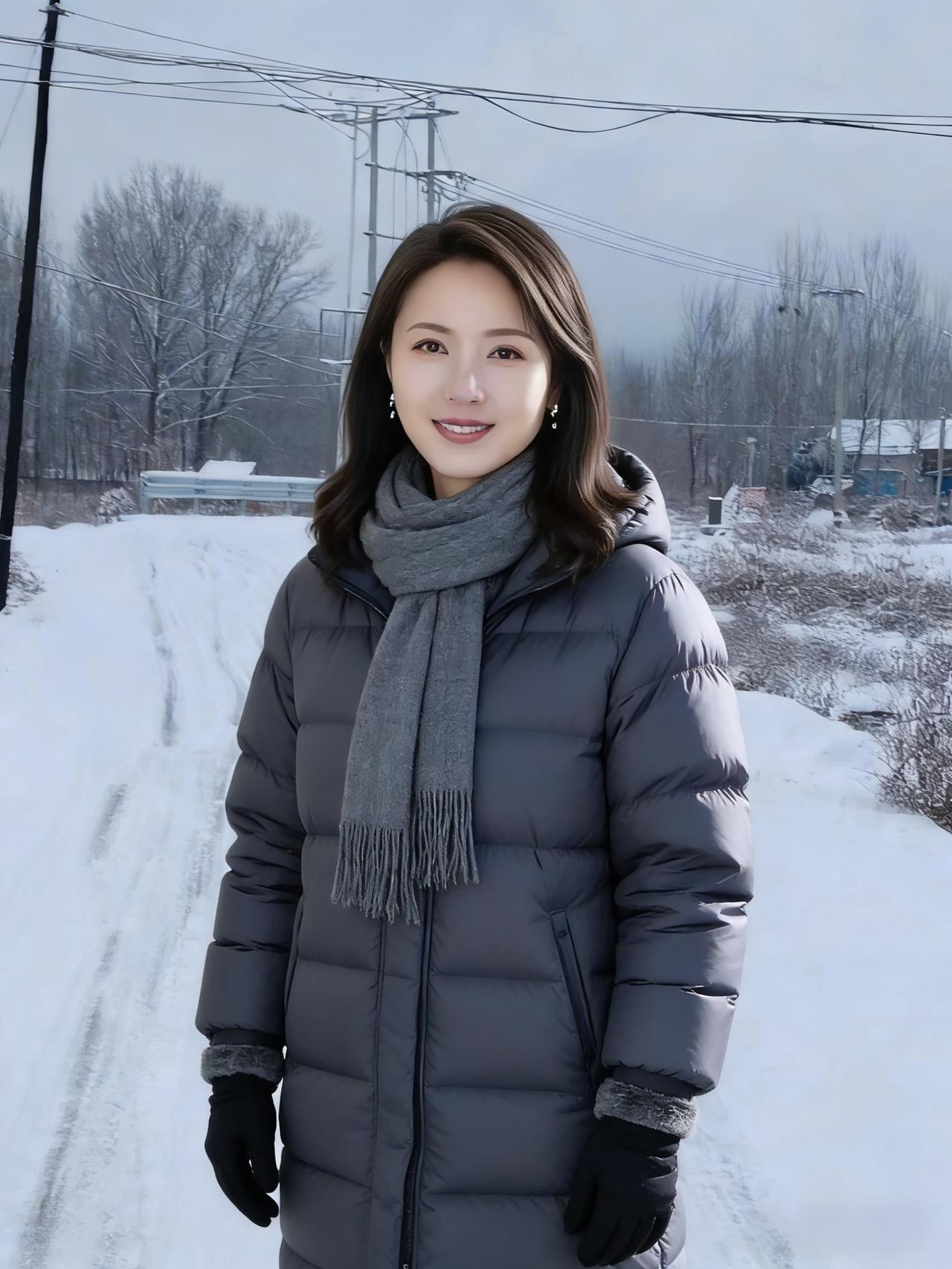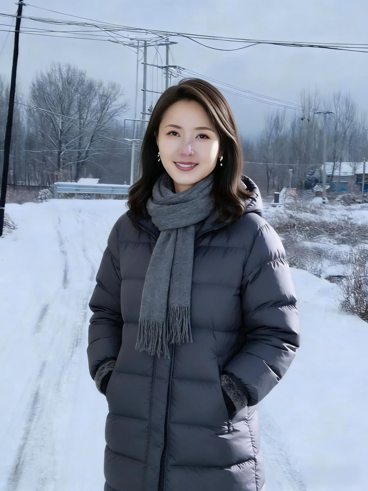 雪是冬天最软的笔墨,轻轻铺展在旷野 风掠过枝桠,抖落一地洁白的诗行 你站在雪的中央,像一捧温软的月光 不张扬,不浓烈,只把温柔静静流淌 ~ 白色的绒羽裹着暖意,黑与白交织成最净的画 眉眼弯弯,盛着人间最澄澈的晴朗 唇角的笑意,化开了寒冬里的霜 连飘落的雪花,都甘愿停在你的肩头轻唱 ~ 远处的屋舍覆着薄雪,枯树映着淡云 天地间一片苍茫,唯有你,是最鲜活的光 不必刻意装点,不必寻寻觅觅 一颦一笑,便胜却冬日所有的风光 ~ 围巾绕着温柔,毛呢藏着端庄 每一步踏在雪上,都踩出安静的诗章 夜色与白昼,暖阳与寒霜 你在四季的尾端,把美好轻轻安放 雪落无声,清颜如故 岁月温柔,眉眼如初 这人间的冬色,因你多了三分暖意 这漫天的飞雪,因你少了几分寒凉 你是雪地里开不败的温柔,是寒冬里最暖的向往 风来,雪落,你站在那里 便是整个冬天,最动人的模样