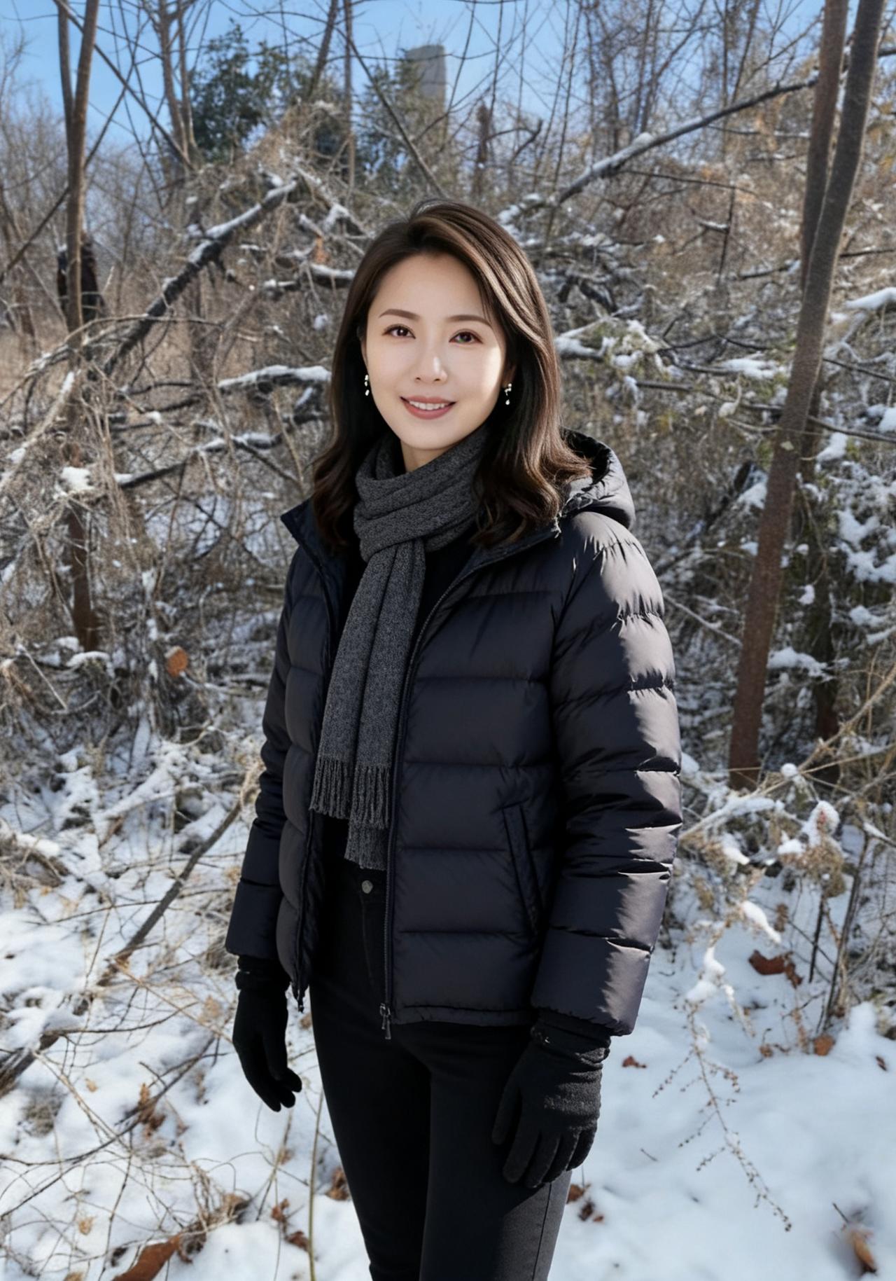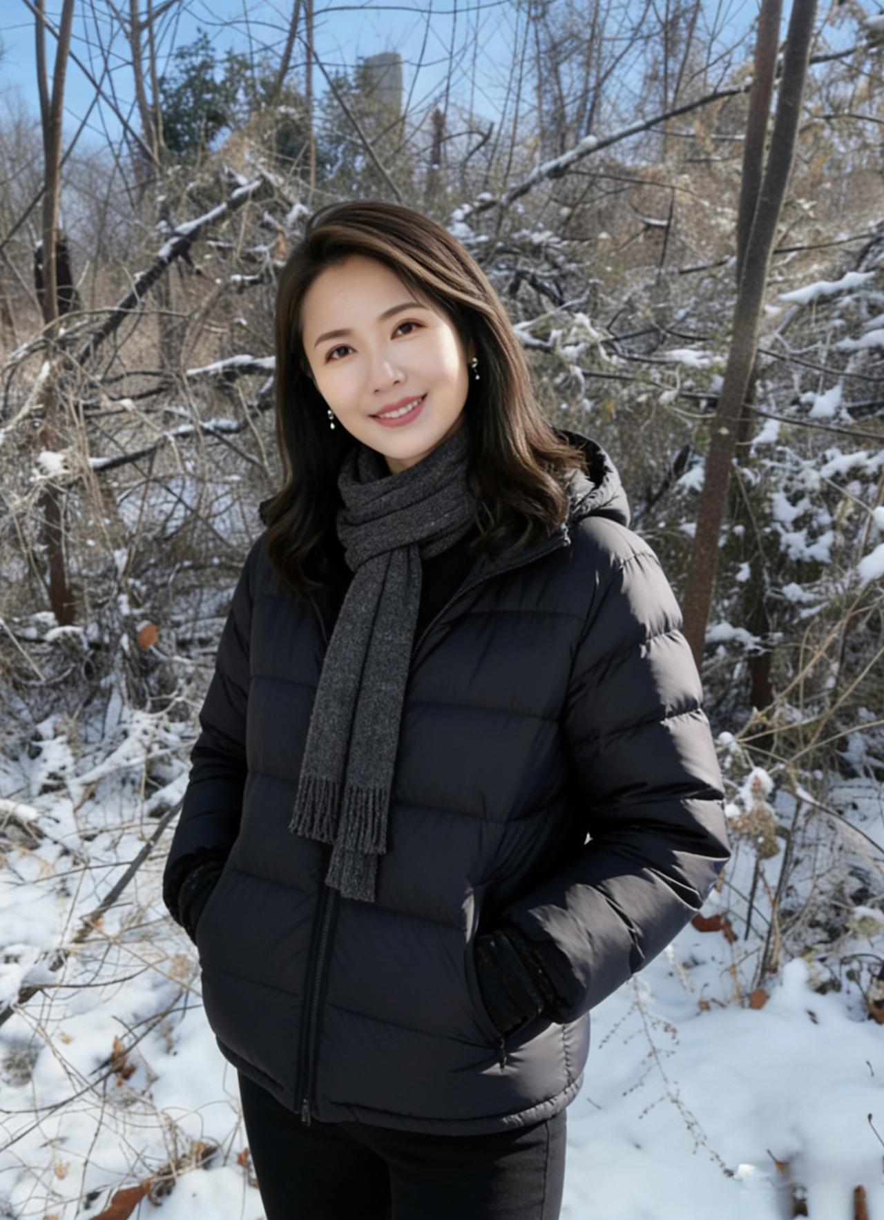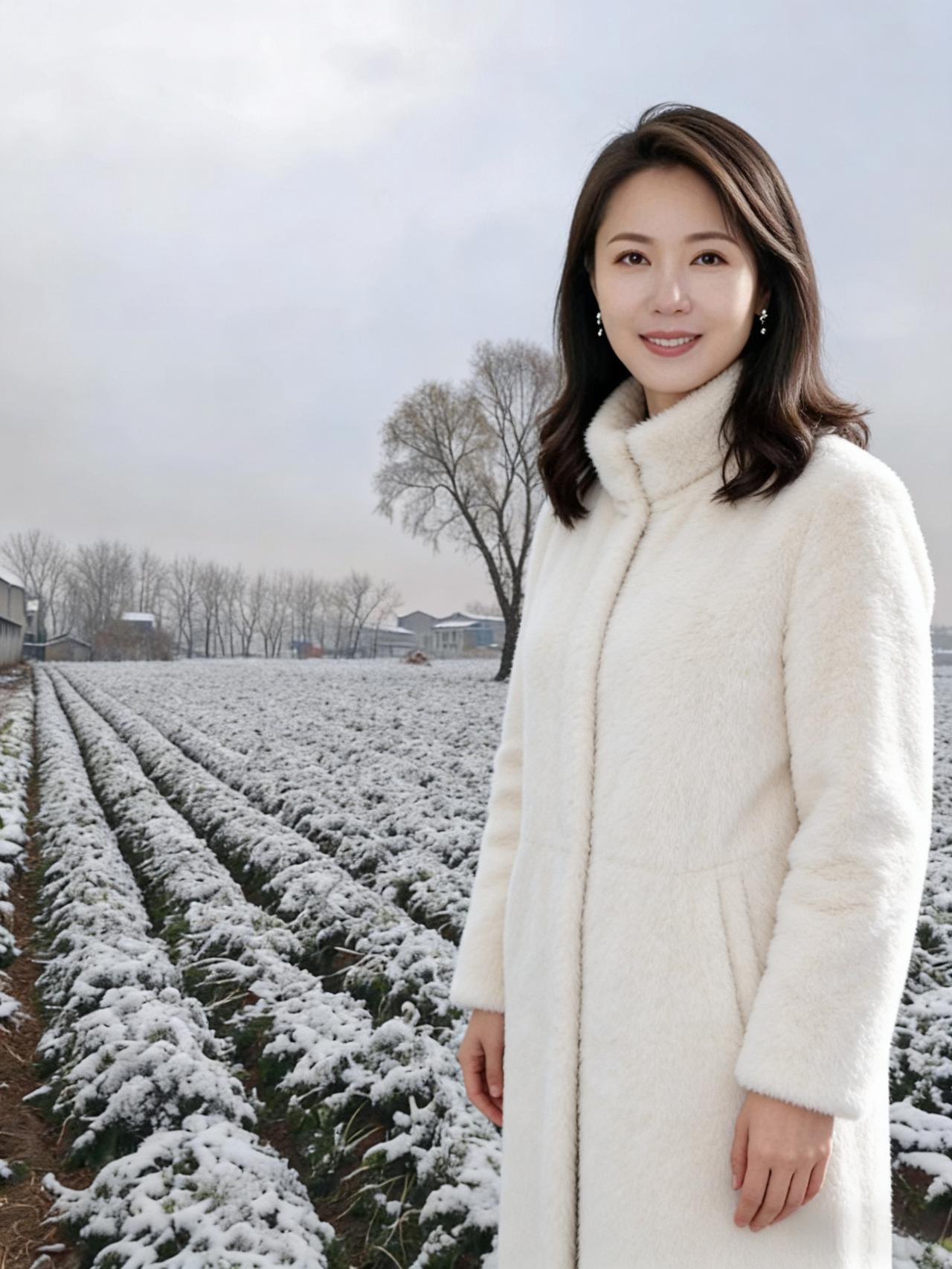 雪是冬天最软的笔墨,轻轻铺展在旷野 风掠过枝桠,抖落一地洁白的诗行 你站在雪的中央,像一捧温软的月光 不张扬,不浓烈,只把温柔静静流淌 ~ 白色的绒羽裹着暖意,黑与白交织成最净的画 眉眼弯弯,盛着人间最澄澈的晴朗 唇角的笑意,化开了寒冬里的霜 连飘落的雪花,都甘愿停在你的肩头轻唱 ~ 远处的屋舍覆着薄雪,枯树映着淡云 天地间一片苍茫,唯有你,是最鲜活的光 不必刻意装点,不必寻寻觅觅 一颦一笑,便胜却冬日所有的风光 ~ 围巾绕着温柔,毛呢藏着端庄 每一步踏在雪上,都踩出安静的诗章 夜色与白昼,暖阳与寒霜 你在四季的尾端,把美好轻轻安放 雪落无声,清颜如故 岁月温柔,眉眼如初 这人间的冬色,因你多了三分暖意 这漫天的飞雪,因你少了几分寒凉 你是雪地里开不败的温柔,是寒冬里最暖的向往 风来,雪落,你站在那里 便是整个冬天,最动人的模样