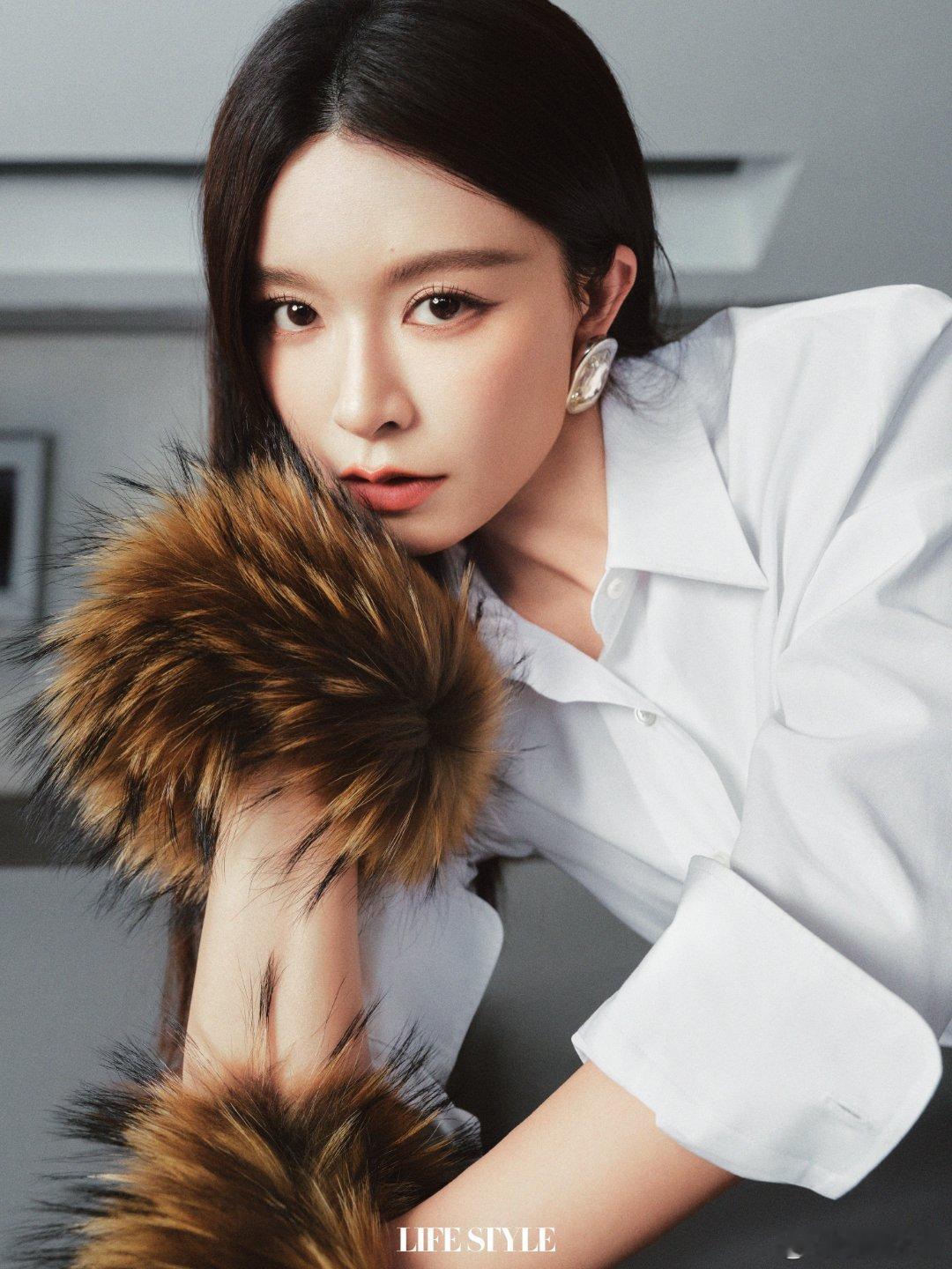 文咏珊廓形衬衫裁云为袖,皮手套攥住整片光影,黑白默片里走出的缪斯正踩碎刻板印象。文咏珊精品购物指南封面文咏珊式的大女主就是这个味