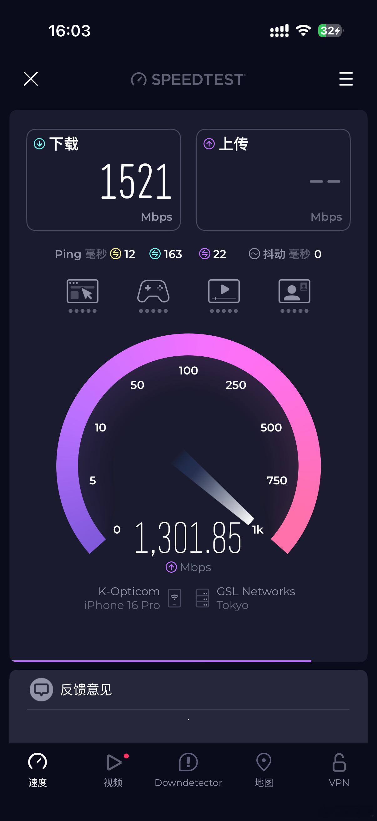 顺便提一句,日本家庭宽带一般下行多少,上行就能跑到多少,不会出现“千兆光纤,百兆上行”那种恶心事。iphone能测网速了
