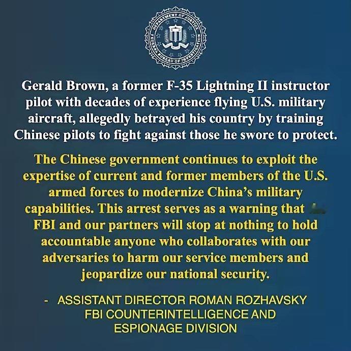 为中国培训飞行员的美国教官(前美国空军少校杰拉尔德·布朗),刚回国就被逮捕了。
