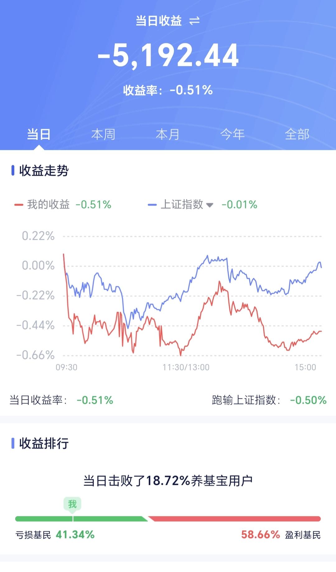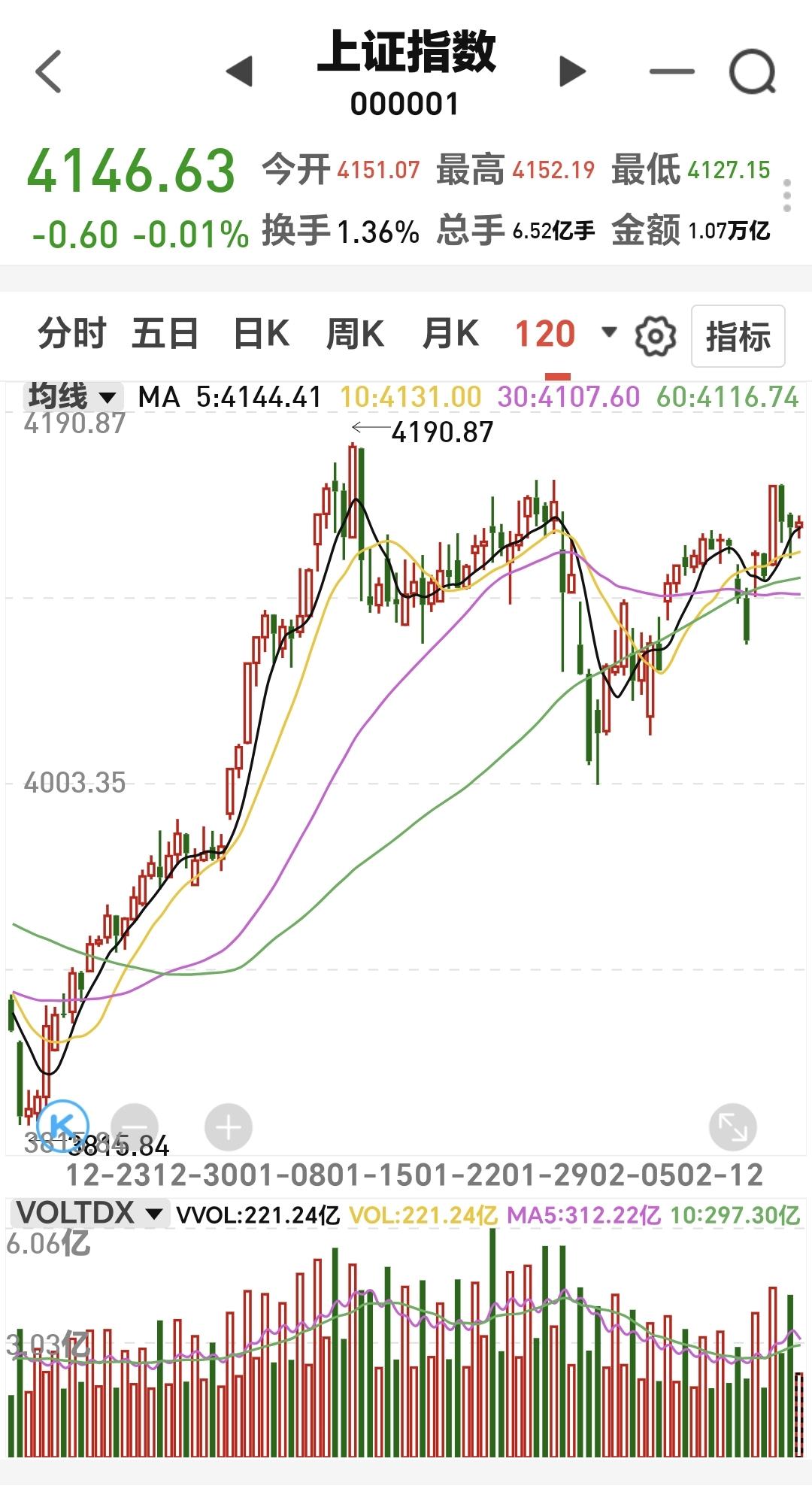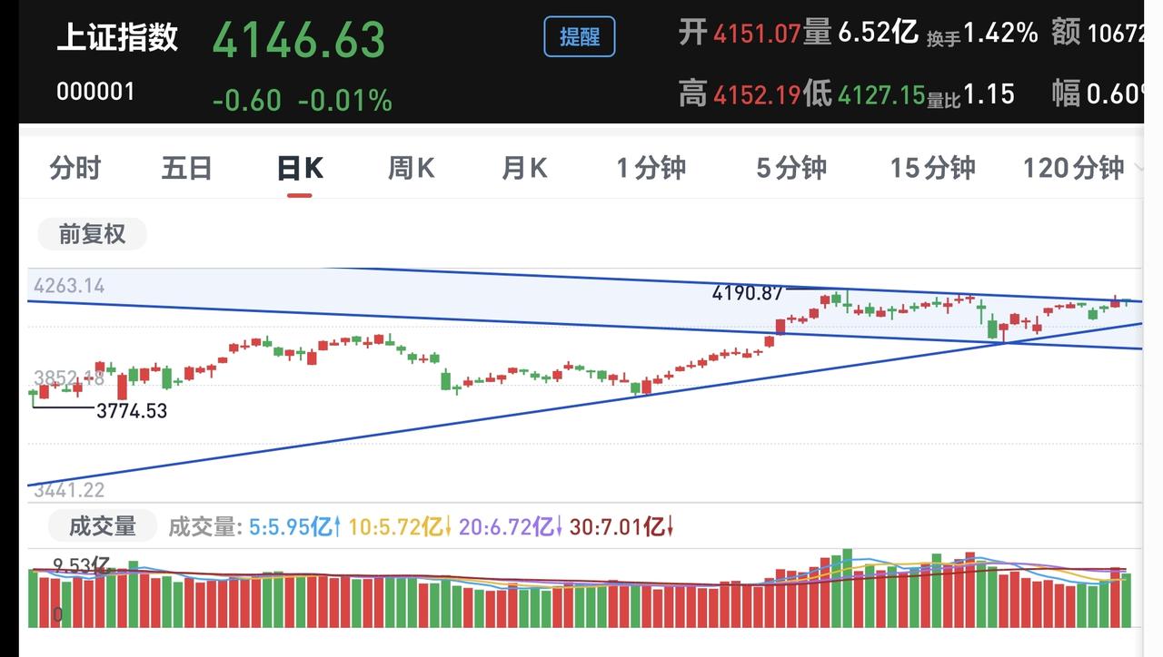 基金:继续做好再一次止盈的准备 今天市场高开以后小幅度波动,盘中最低4127点,盘中最高4152点,上下只有25个点的震荡幅度,创业板指下跌了0.29%,收于3344点,上证指数下跌了0.01%,收于4146点。 整个股票市场,上涨2488家,下跌2875家,涨停81家,跌停8家,上涨家数少于下跌家数。 持有的基金中,下午收盘的时候,估值盈利金额最大的三个板块是:5G板块,芯片半导体板块,先进制造板块,估值亏损金额最大的三个板块是:创新药板块,证券板块,沪港深消费,估值整体亏损了5192元。 整个基金市场,上涨6690家,下跌12899家,上涨幅度超过5%的15家,下跌幅度超过5%的15家。 图10是今天板块的上涨排行榜,上涨幅度最大的三个板块是:电网设备板块,CPO板块,通信板块,图11是今天板块的下跌排行榜,下跌幅度最大的三个板块是:创新药板块,储能板块,恒生科技板块,图12是今天基金的加仓和减仓人数,加仓51275211人,减仓31257161人,加仓人数超过了减仓人数。 整个市场主力资金净流入最多的三个板块是:电子板块,通信板块,信息技术板块,主力资金净流出最多的三个板块是:蓝筹策略板块,esg板块,国企板块。 1:今天高开低走探底回升的主要力量是黄色线,黄色线的高高在上,会让市场不容易大幅度下跌,盘中震荡以后也很容易拉上来。 2:今天两市累计成交25384亿,相比于昨天放量了3%,这个成交量也是中规中矩,主力资金净流出463亿。 3:看下面的截图14,这是上证指数日K线图,今天收盘的时候,处于日线级别短期下跌通道中,处于日线级别短期下跌趋势中,但现在处于下跌通道上轨线上,近期还是要观察上轨线的得失,但如果形成突破,也很快会到达前高4190点附近,也是我们需要高度注意的地方,那里我们会有很大的概率进行再一次止盈。创业板指的情况跟上证指数的情况是一样的,见下面的截图15,也是处于日线级别短期下跌通道中,也是位于下跌通道的上轨线上。 4:看下面的截图16,这是黄金板块日K线图,现在处于日线级别的上涨通道中,距离上涨通道的下轨线比较近,近期观察会不会跌破这个上涨通道的下轨线,如果跌破这个上涨通道的下轨线,短线持有的人需要注意风险。 看下面的截图17,这是黄金板块周K线图,现在的位置处于上涨通道的上方,上涨通道的下轨线是长线持有者的持有条件,只有跌破了周线级别上涨通道的下轨线,长线持有的人才需要考虑要不要止盈出来观望,在跌破周线级别上涨通道下轨线之前,所有的涨跌你都可以忽视。 5:看下面的截图18,这是脑机接口板块周K线图,现在的位置处于周线级别上涨通道中,与周线级别上涨通道的上下轨线还有一段距离,短期的涨跌都影响不了这个板块的上涨趋势,长线持有的人可以继续持有,周线级别上涨通道的下轨线是长线持有者的持有条件,只要不跌破周线级别上涨通道的下轨线,长线的人都可以继续持有。 今天指数下跌了0.01%,对市场的判断与昨天一样,还是继续做好随时随地进行再一次止盈的准备,如果明天直接向下下跌,高点的级别不大,半仓左右的人可以观望,如果最近上涨到4190点附近,然后开始下跌形成的高点,会是一个级别相对大的高点,到时候半仓左右的人也要考虑要不要进行再一次止盈。 我已经把自己持有的基金都重新过了一遍,哪些会考虑进行再一次止盈,哪些是肯定不会动,我已经心中有数,做了准备,可以不动,动的时候没有准备,就会手忙脚乱,就会忙中出错,你做好准备了没有?我如果进行再一次止盈,会第一时间分享给大家,如果你已经做好了准备,几分钟的时间就可以操作完成,如果你没有做好准备,你半个小时都完成不了操作。 花1秒钟点赞,花30秒钟评论,就是对我最大的支持,谢谢大家的支持。