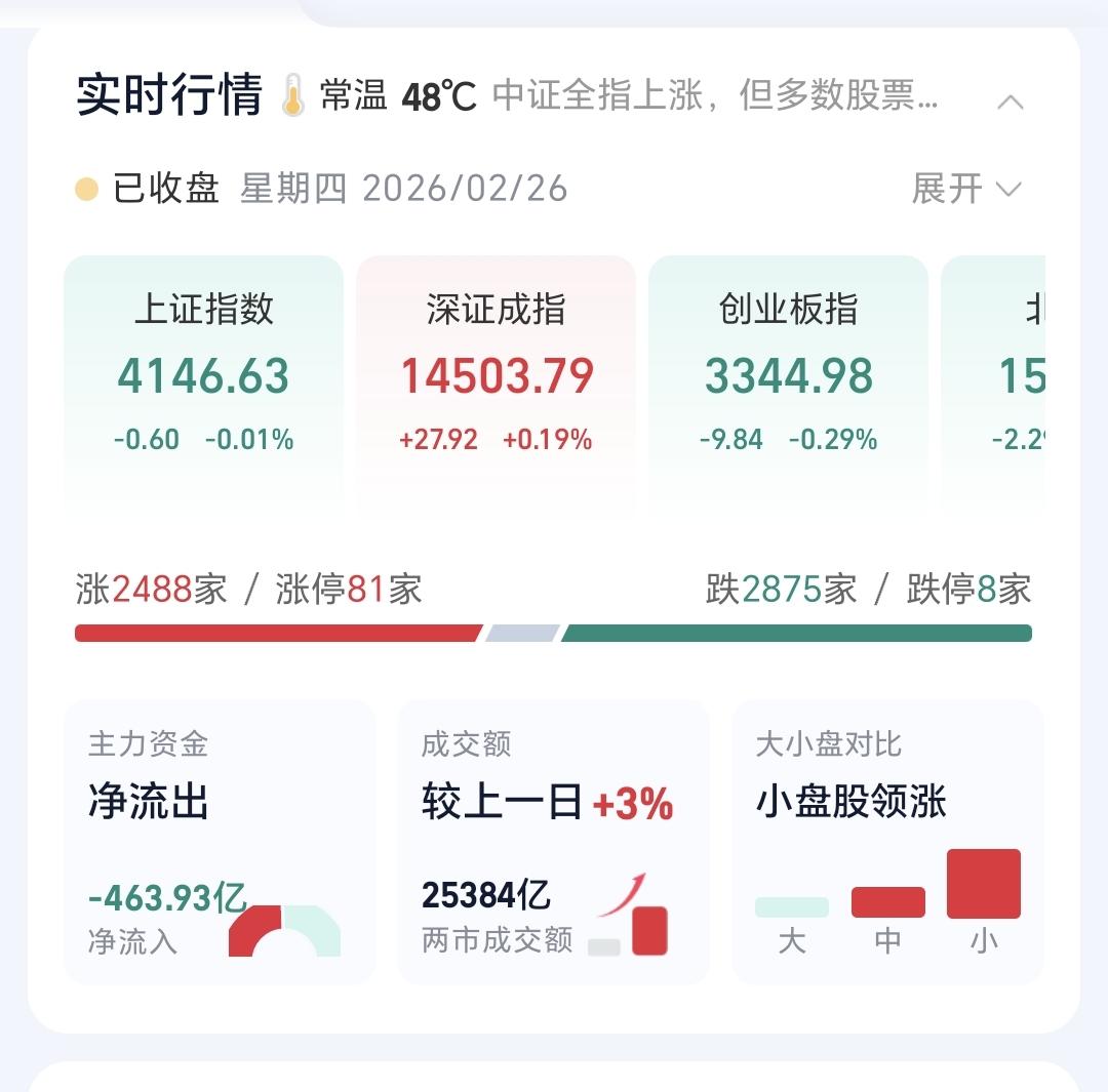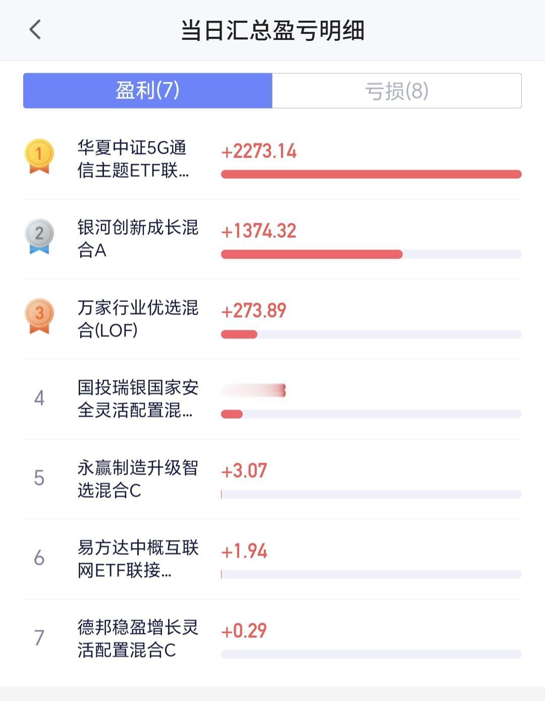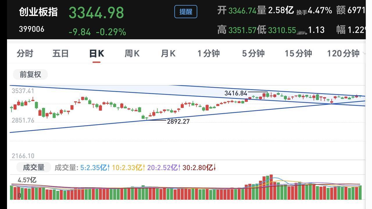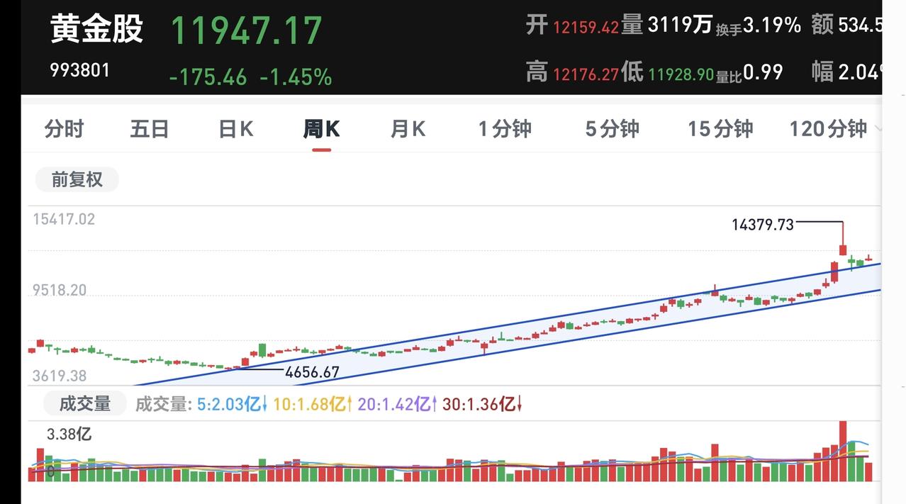 基金:继续做好再一次止盈的准备 今天市场高开以后小幅度波动,盘中最低4127点,盘中最高4152点,上下只有25个点的震荡幅度,创业板指下跌了0.29%,收于3344点,上证指数下跌了0.01%,收于4146点。 整个股票市场,上涨2488家,下跌2875家,涨停81家,跌停8家,上涨家数少于下跌家数。 持有的基金中,下午收盘的时候,估值盈利金额最大的三个板块是:5G板块,芯片半导体板块,先进制造板块,估值亏损金额最大的三个板块是:创新药板块,证券板块,沪港深消费,估值整体亏损了5192元。 整个基金市场,上涨6690家,下跌12899家,上涨幅度超过5%的15家,下跌幅度超过5%的15家。 图10是今天板块的上涨排行榜,上涨幅度最大的三个板块是:电网设备板块,CPO板块,通信板块,图11是今天板块的下跌排行榜,下跌幅度最大的三个板块是:创新药板块,储能板块,恒生科技板块,图12是今天基金的加仓和减仓人数,加仓51275211人,减仓31257161人,加仓人数超过了减仓人数。 整个市场主力资金净流入最多的三个板块是:电子板块,通信板块,信息技术板块,主力资金净流出最多的三个板块是:蓝筹策略板块,esg板块,国企板块。 1:今天高开低走探底回升的主要力量是黄色线,黄色线的高高在上,会让市场不容易大幅度下跌,盘中震荡以后也很容易拉上来。 2:今天两市累计成交25384亿,相比于昨天放量了3%,这个成交量也是中规中矩,主力资金净流出463亿。 3:看下面的截图14,这是上证指数日K线图,今天收盘的时候,处于日线级别短期下跌通道中,处于日线级别短期下跌趋势中,但现在处于下跌通道上轨线上,近期还是要观察上轨线的得失,但如果形成突破,也很快会到达前高4190点附近,也是我们需要高度注意的地方,那里我们会有很大的概率进行再一次止盈。创业板指的情况跟上证指数的情况是一样的,见下面的截图15,也是处于日线级别短期下跌通道中,也是位于下跌通道的上轨线上。 4:看下面的截图16,这是黄金板块日K线图,现在处于日线级别的上涨通道中,距离上涨通道的下轨线比较近,近期观察会不会跌破这个上涨通道的下轨线,如果跌破这个上涨通道的下轨线,短线持有的人需要注意风险。 看下面的截图17,这是黄金板块周K线图,现在的位置处于上涨通道的上方,上涨通道的下轨线是长线持有者的持有条件,只有跌破了周线级别上涨通道的下轨线,长线持有的人才需要考虑要不要止盈出来观望,在跌破周线级别上涨通道下轨线之前,所有的涨跌你都可以忽视。 5:看下面的截图18,这是脑机接口板块周K线图,现在的位置处于周线级别上涨通道中,与周线级别上涨通道的上下轨线还有一段距离,短期的涨跌都影响不了这个板块的上涨趋势,长线持有的人可以继续持有,周线级别上涨通道的下轨线是长线持有者的持有条件,只要不跌破周线级别上涨通道的下轨线,长线的人都可以继续持有。 今天指数下跌了0.01%,对市场的判断与昨天一样,还是继续做好随时随地进行再一次止盈的准备,如果明天直接向下下跌,高点的级别不大,半仓左右的人可以观望,如果最近上涨到4190点附近,然后开始下跌形成的高点,会是一个级别相对大的高点,到时候半仓左右的人也要考虑要不要进行再一次止盈。 我已经把自己持有的基金都重新过了一遍,哪些会考虑进行再一次止盈,哪些是肯定不会动,我已经心中有数,做了准备,可以不动,动的时候没有准备,就会手忙脚乱,就会忙中出错,你做好准备了没有?我如果进行再一次止盈,会第一时间分享给大家,如果你已经做好了准备,几分钟的时间就可以操作完成,如果你没有做好准备,你半个小时都完成不了操作。 花1秒钟点赞,花30秒钟评论,就是对我最大的支持,谢谢大家的支持。