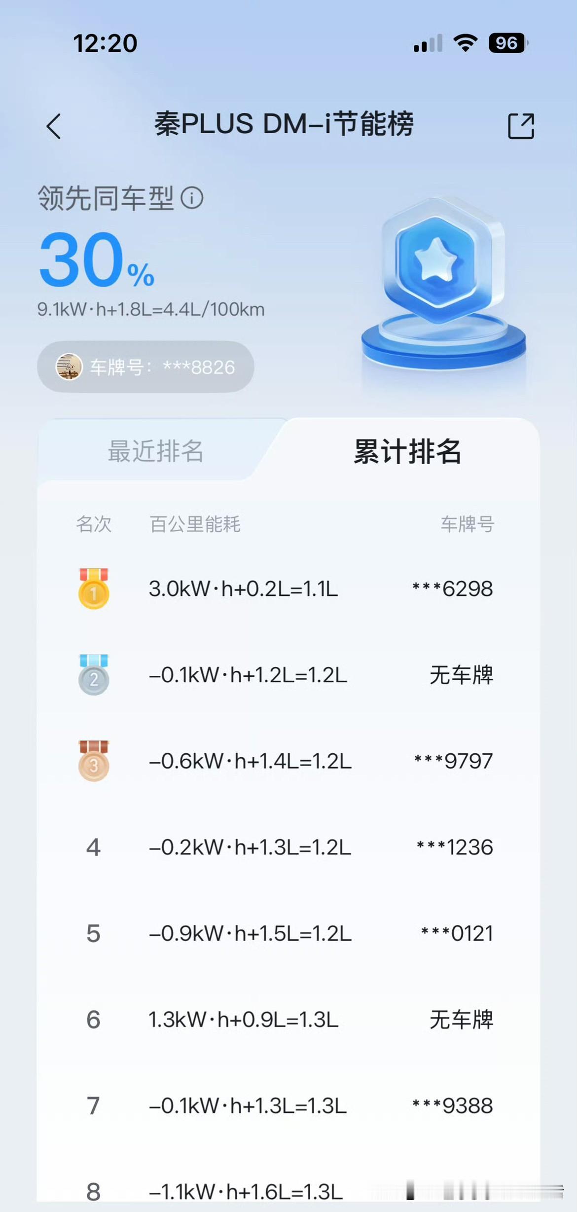 看了一下比亚迪秦Plus DM-i节能榜,本车累计能耗超越30%的车友,百公里4.4L油。第一名百公里能耗1.1L油,这咋跑出来的???推着车跑啊?