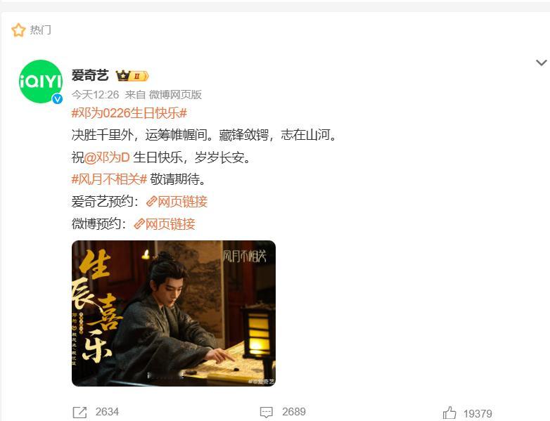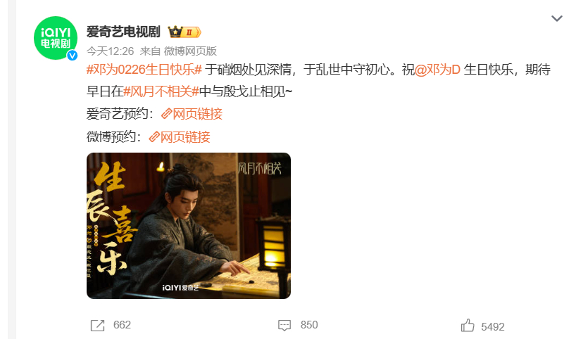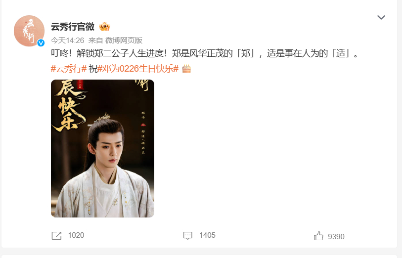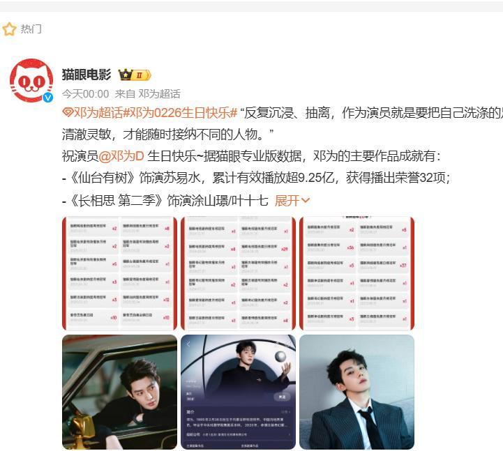 今天邓为的生日,腾讯,爱奇艺,猫眼,云秀行官微,都发了微博送了祝福,看来邓为在影