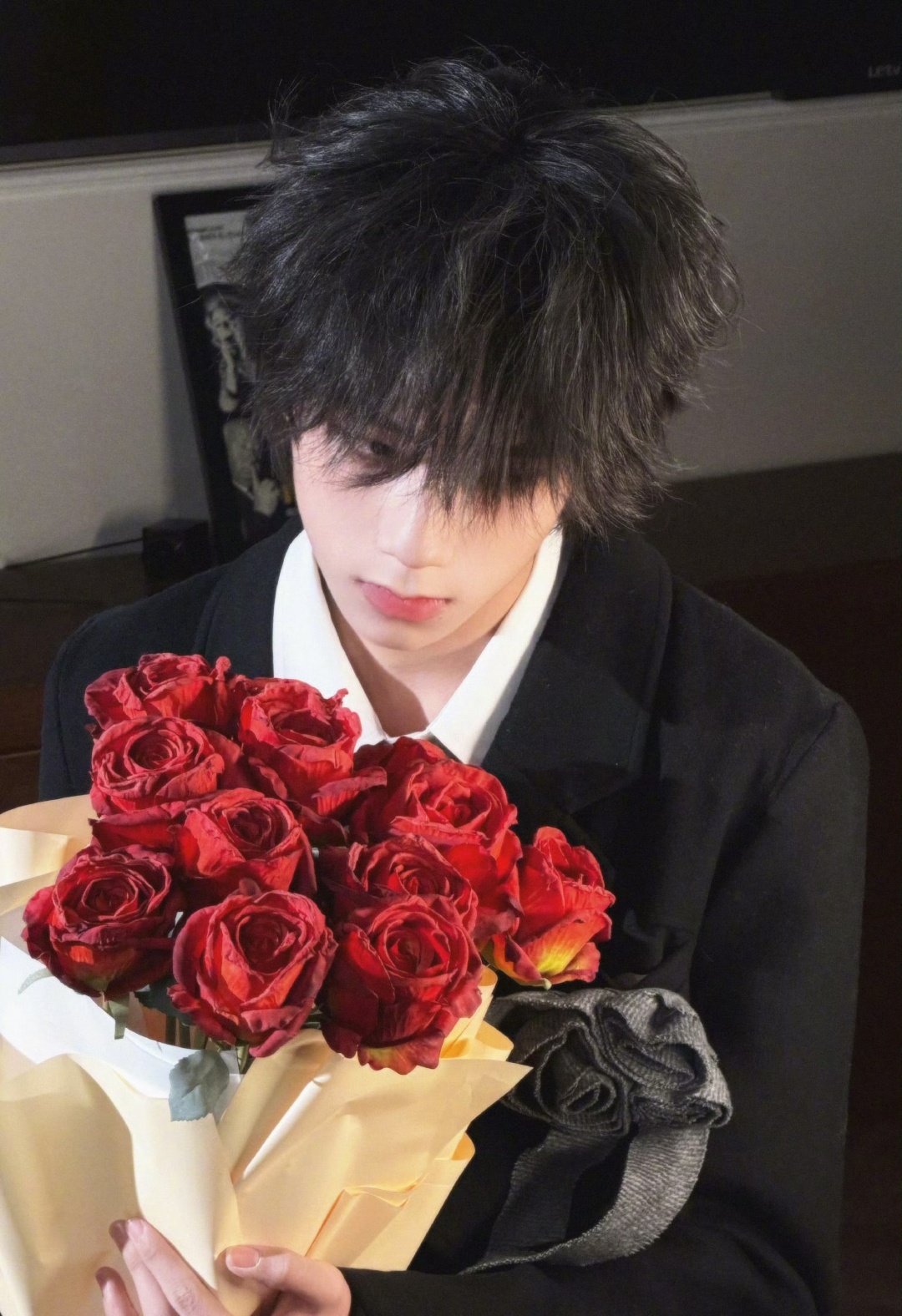 王橹杰手捧红玫瑰王橹杰发布一组手捧红玫瑰的视觉写真。白衬衫与红玫瑰的色彩碰撞,搭配光影对比,营造出纯净与炽烈并存的浪漫氛围。截至发稿,相关话题阅读量快速攀升,粉丝围绕“温柔告白”“成长隐喻”等角度展开多元解读。