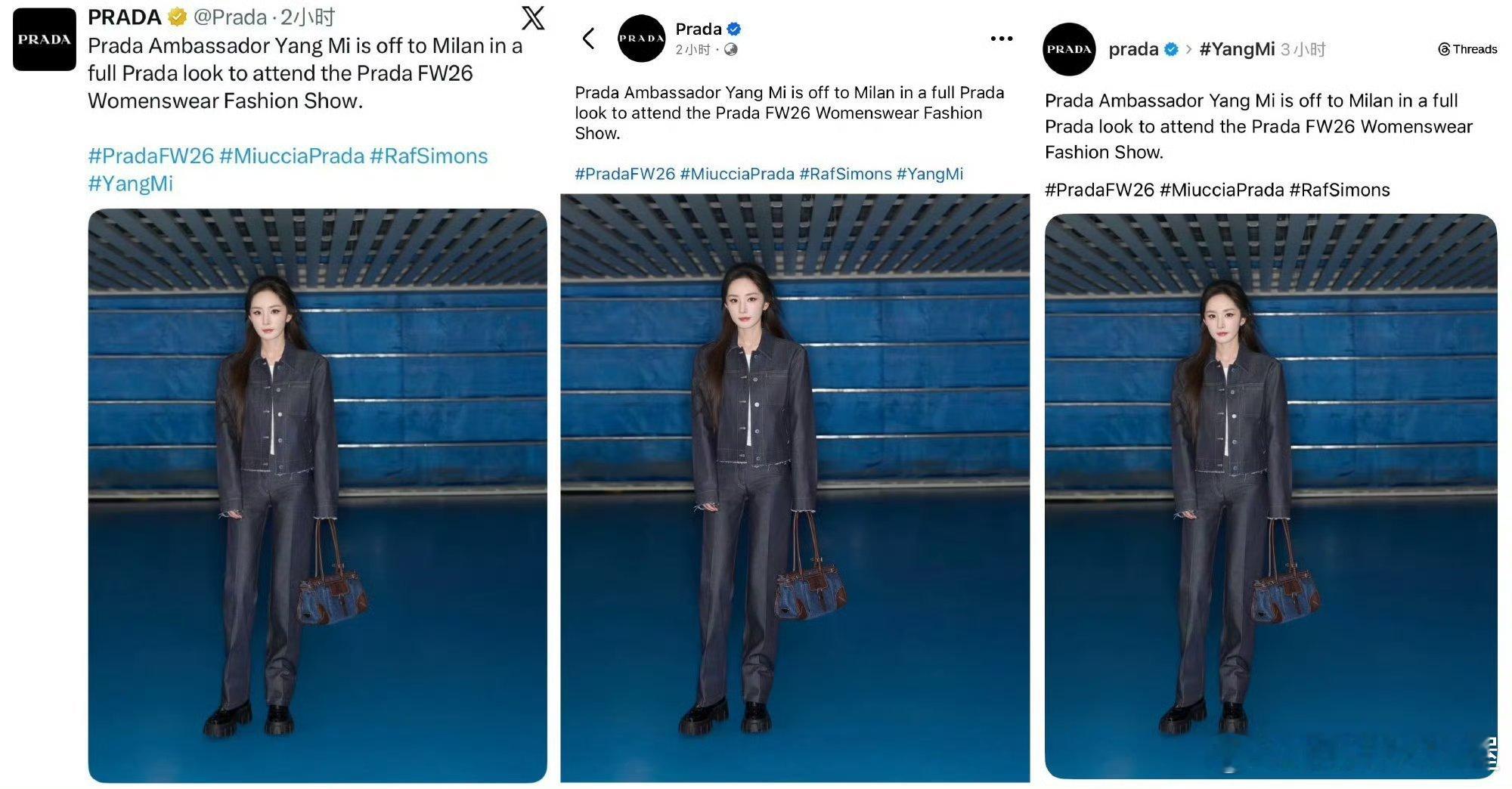 杨幂米兰时装周大秀出发图Prada外网三平台均认领,而且海外主流时尚杂志媒体也有宣传今天看秀造型也美得很,首次看秀+未发布款+全球首穿,来欣赏美女美貌吧!