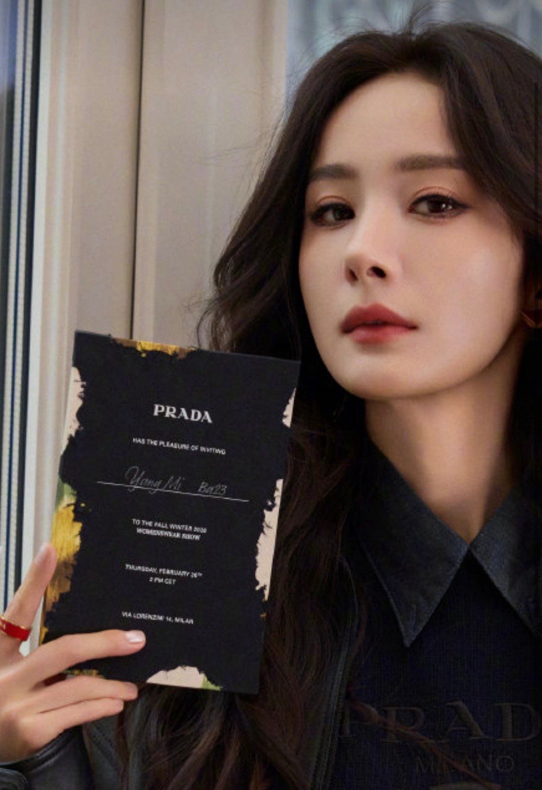 Prada代言人杨幂Prada外网官方三平台认领杨幂出发米兰时装周造型图!落地