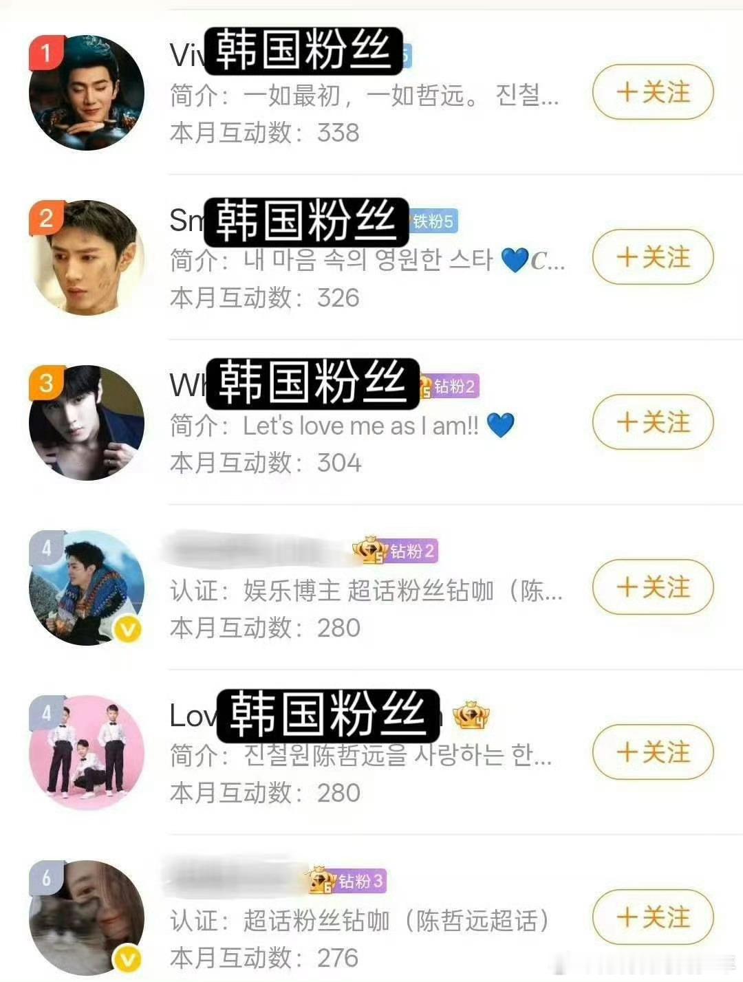陈哲远微博互动榜前5有4个韩国粉丝陈哲远海顶名不虚传 韩国粉丝强势占领互动榜,陈哲远海外人气太绝!全球影响力真的拉🈵陈哲远微博互动榜前5有4个韩国粉丝