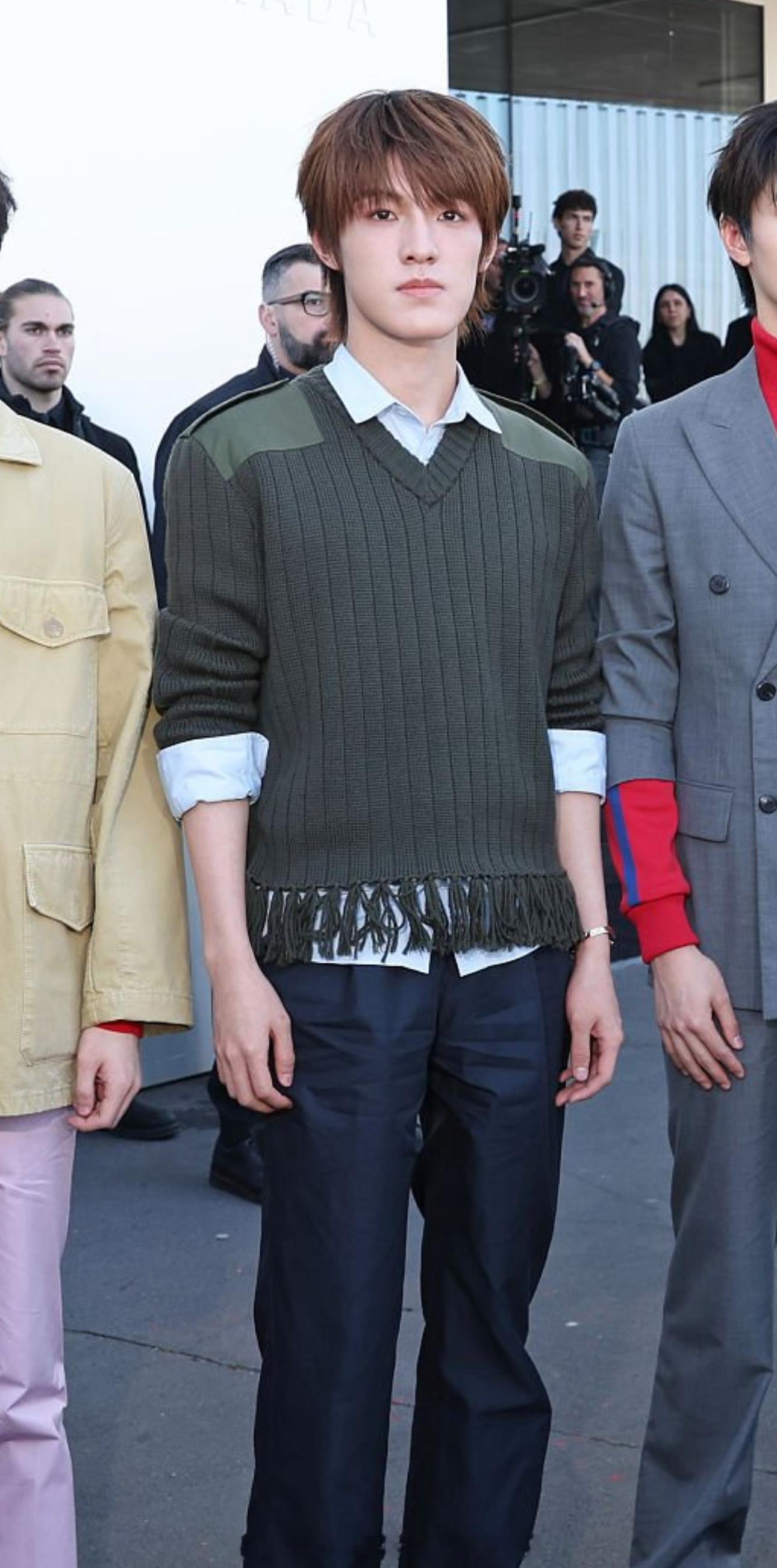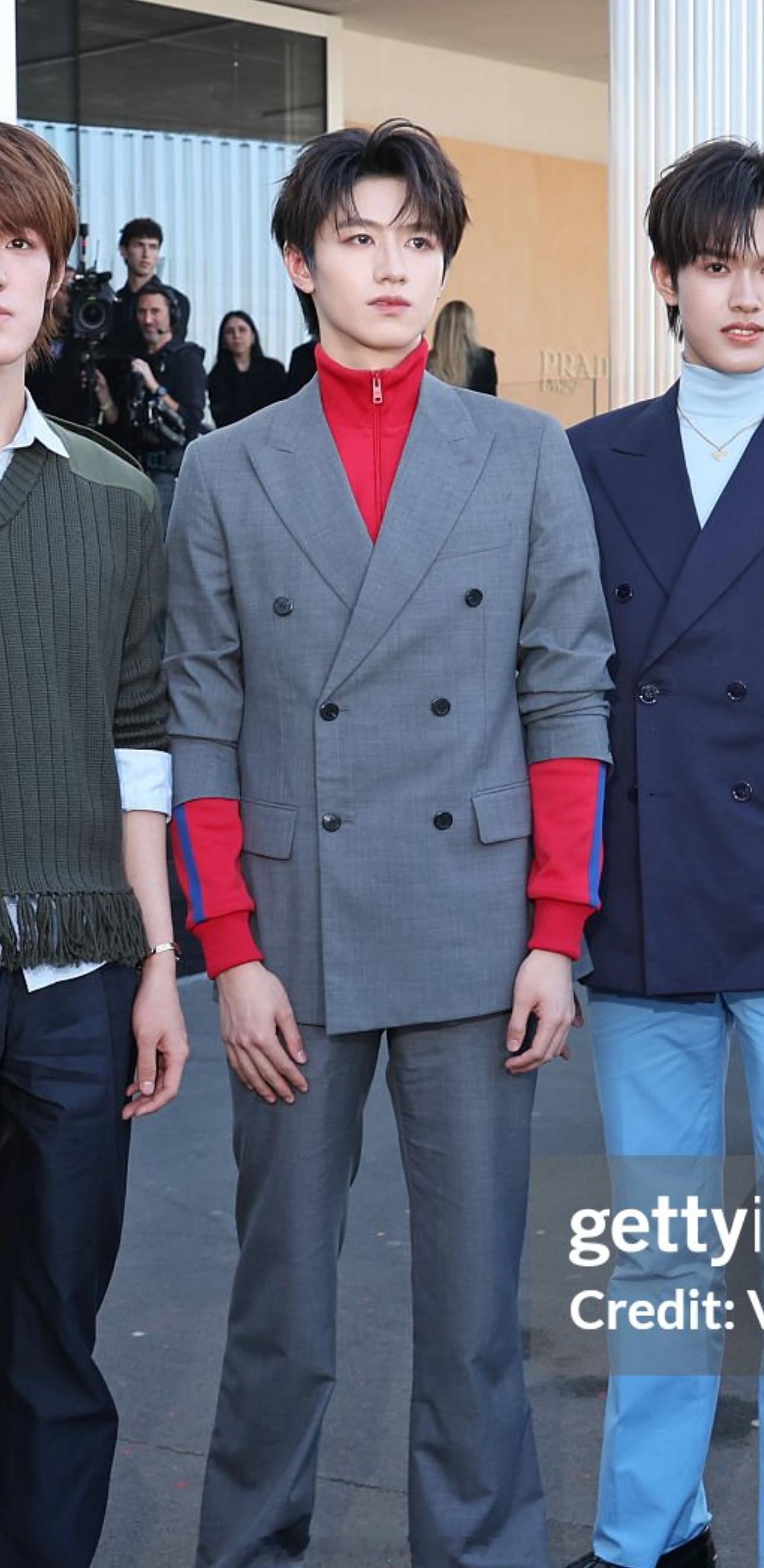 TOP登陆少年组合朱志鑫、张泽禹、张极、左航、苏新皓今日米兰时装周prada大秀