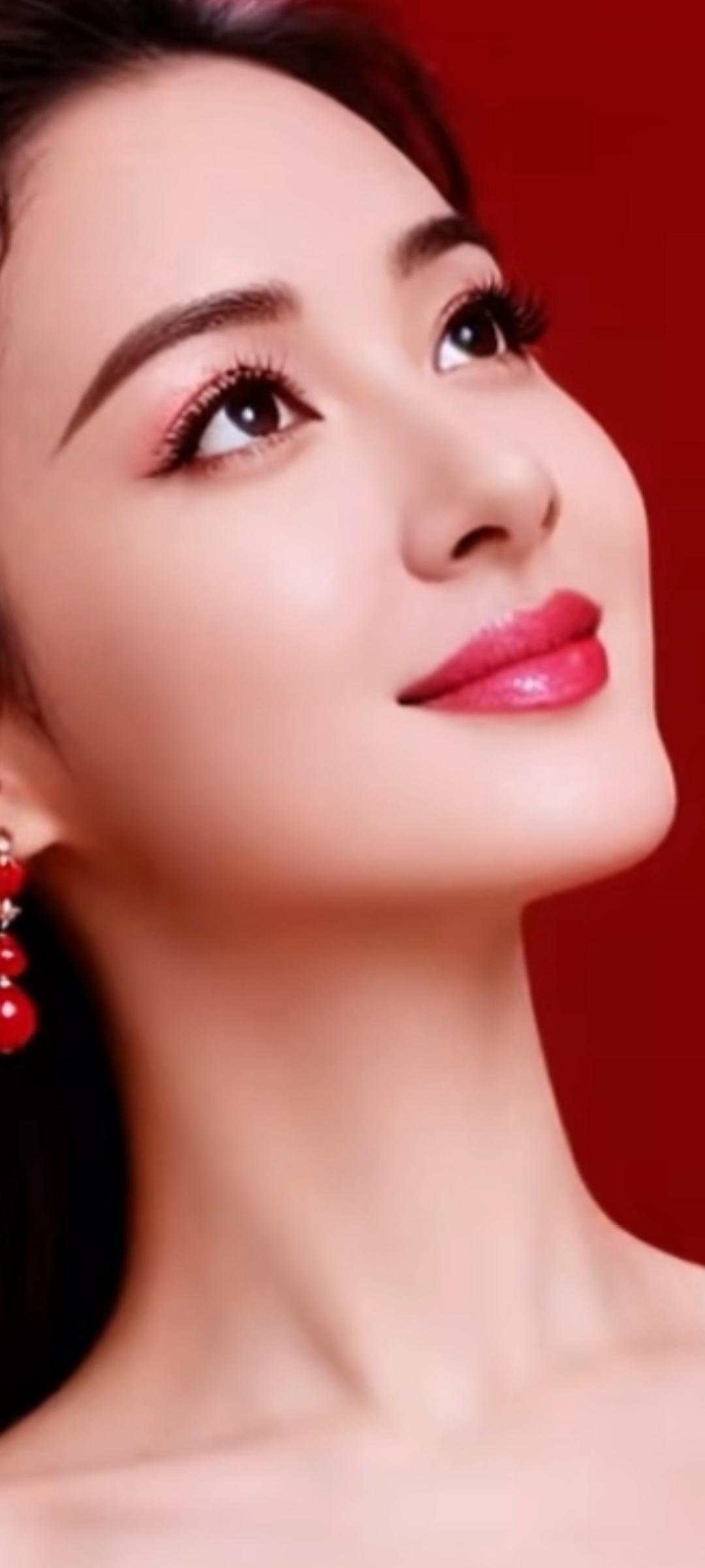优雅红唇,闪耀耳环,红衣美人,气质非凡