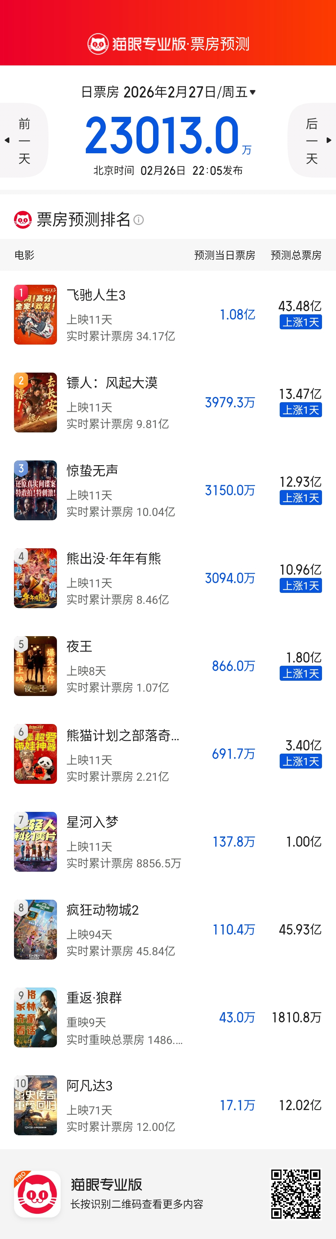 今年春节档之后没几天就开学,给各片的发挥空间不太大了。2月到百亿已经没戏,要等3月1日了。