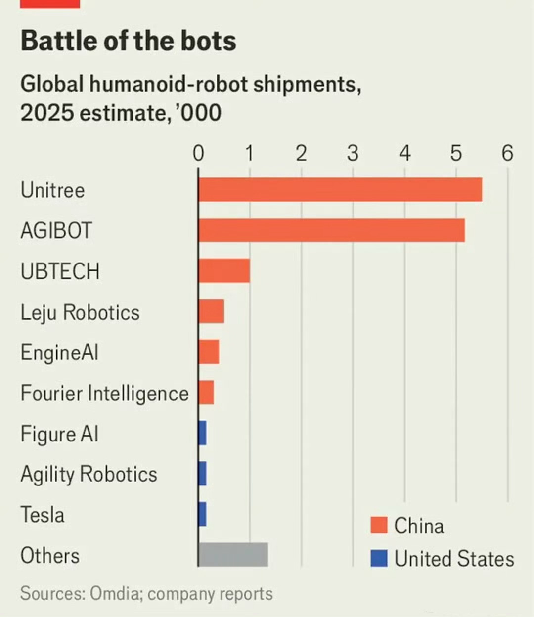 2025年全球人形机器人总出货量预计将达到约1.3万台,相较于2024年的3000台增长近480%,其中约九成由中国企业贡献,仅宇树科技(Unitree)和智元机器人(AGIBOT)两家合计就占全球总量的70%至80%
