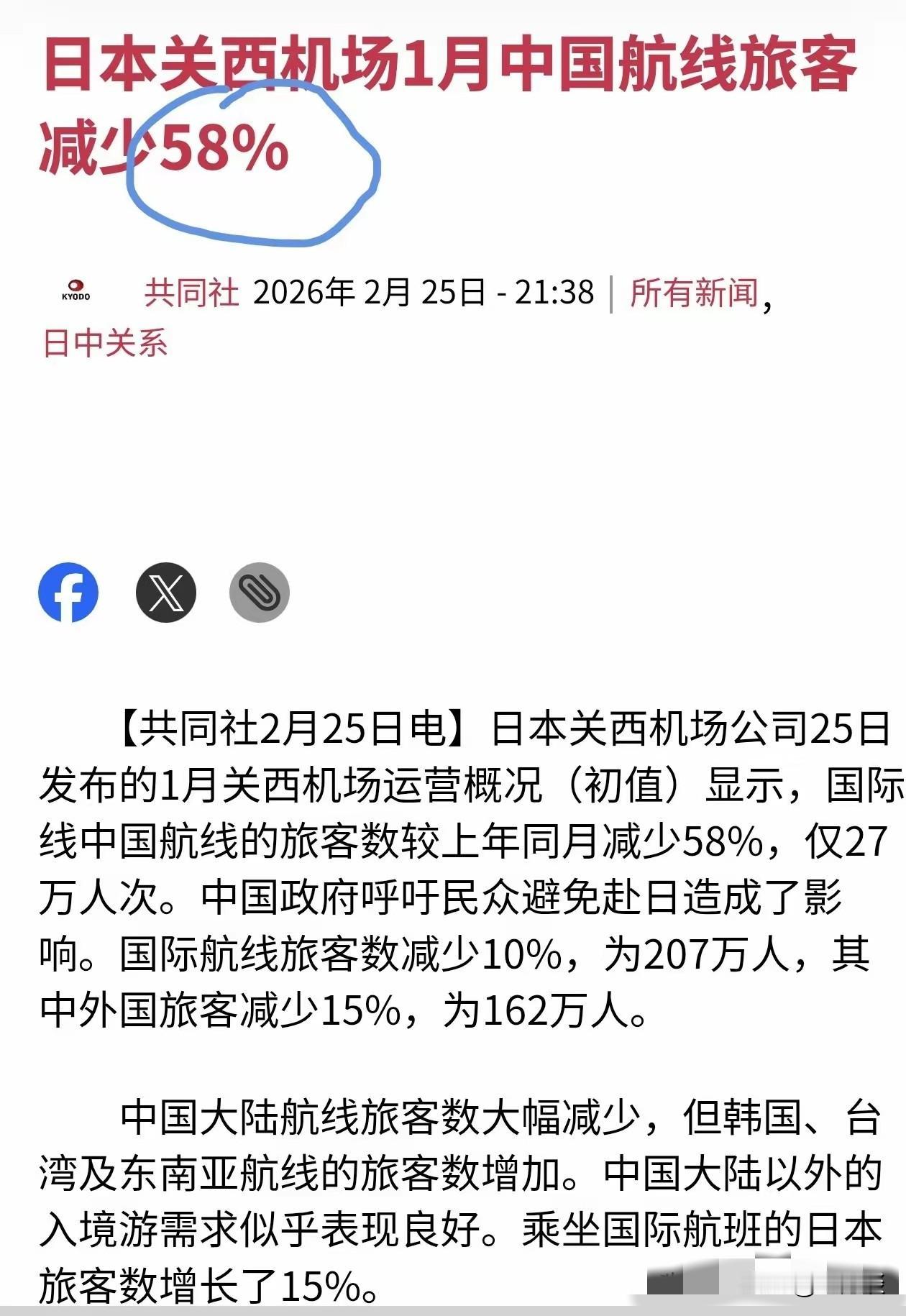 日本关西机场统计了关西机场今年同去年同期相比,来自中国的游客减少了 58%,仅 27 万人次。看到这个数据真是惊呆了。也就是说,还有这么多人日本呢!去年同期有 50 多万中国游客通过关西机场前往日本旅游、公干等。但是今年以来,由于众所周知的原因,我们一再提醒中国游客不要前往日本旅游,但即使是在三申五令的提醒下,中国仍然有 27 万人次不顾相关部门的好意提醒前往日本,他们这完全就是置善意提醒而不顾,如果他们在国外发生了什么事情,他们可能又会抱怨国家没有给他们提供相应的后勤服务,真不知道这些人怎么想的。三申五令不浪大家去,他们偏要去。