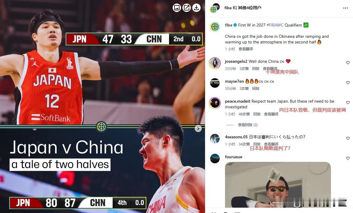 依我所看,今晚过后,就这场对日本的比赛的裁判吹罚,中国男篮应该要起诉到FⅠBA国际篮联,客场的哨子太黑了,处处针对中国男篮,尤其是末节领先后,裁判的哨子一直在偏日本,试图帮助日本扭转局面,多次判罚对中国男篮非常不利,争议哨太多了,而且多次判罚完全看不懂,中国男篮能在客场先落后再逆转赢下日本,这绝不是运气,而是中国男篮的真实实力,在五打八的不利情况下都能战胜日本,可见难度之大,国际篮联应该立即调查该场比赛的三位执法裁判!