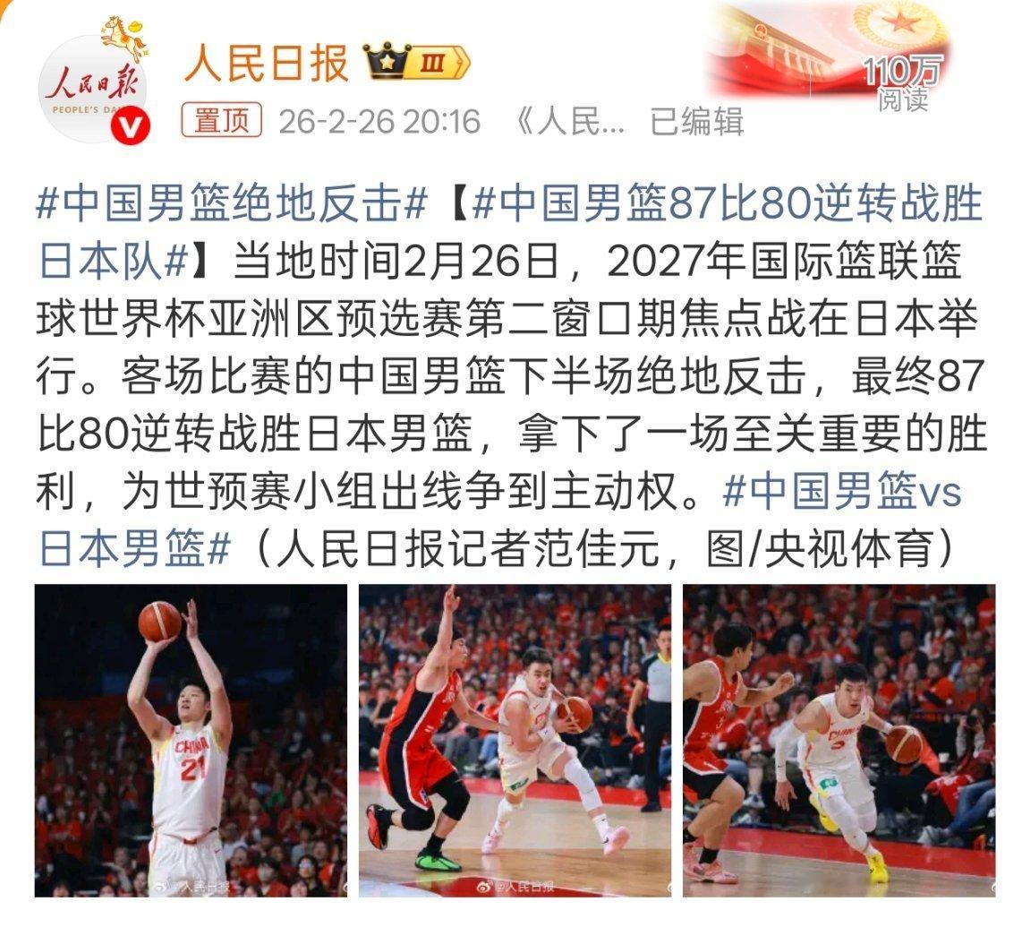 中国男篮战胜日本男篮网友辣评:中场休息,郭指导啥也没说,给队员放了10分钟的《南京南京》。顶着裁判压力逆转取胜,实在太爽了。