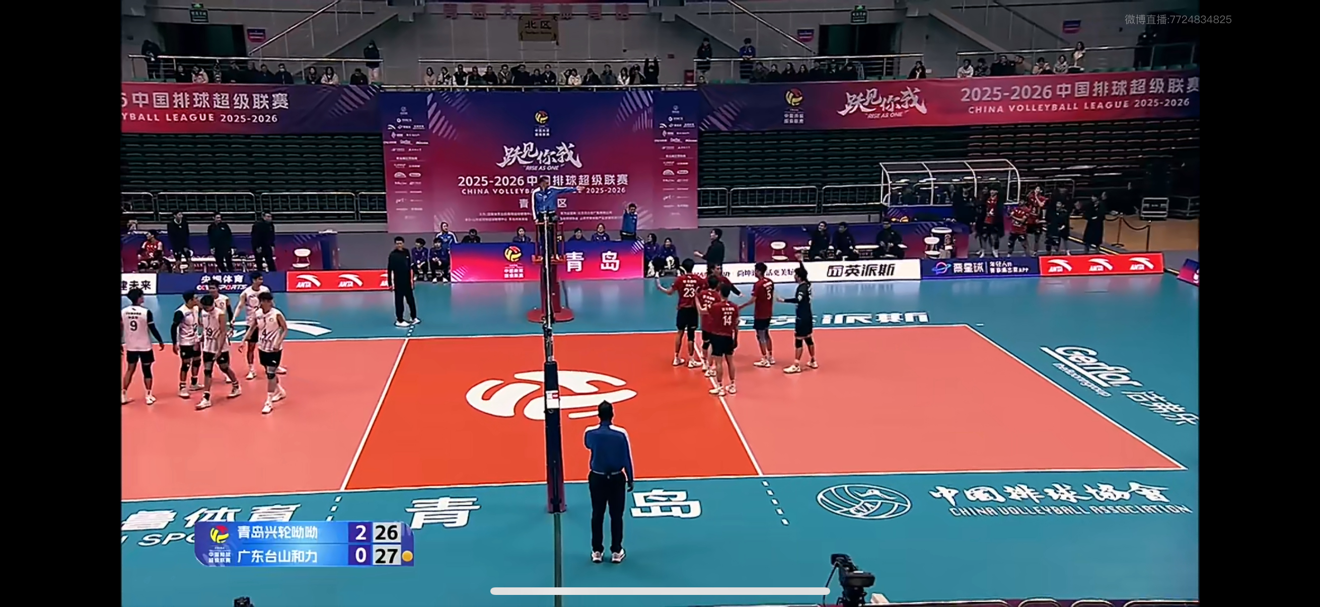 我粤男排28-26扳回一局2025-2026中国男排超级联赛