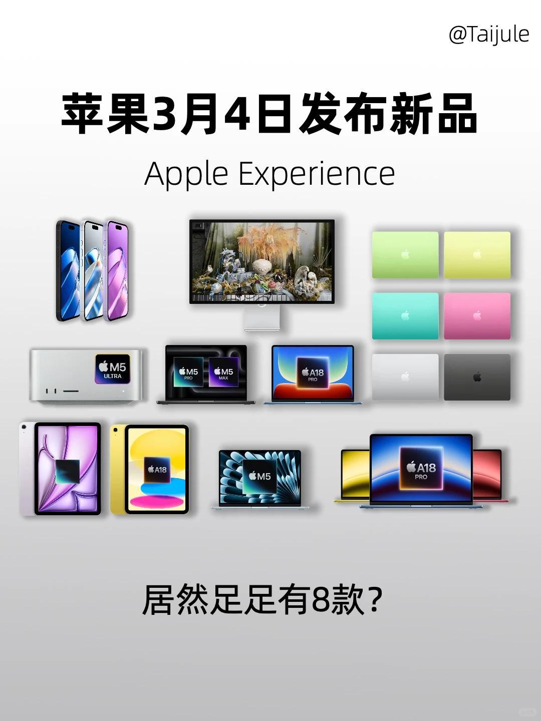 苹果新品来了官宣炸场!苹果2026春季发布会定档3月4日22:00,上海主场全球直播,库克亲自坐镇推五大新品,主打AI普惠+亲民性价比!🔥iPhone 17e:A19芯片+Apple Intelligence本地化AI,MagSafe磁吸充电回归(25W),4499元起,被称"史上最强入门机"!💻平价MacBook:3999元起的无后缀款,学生党狂喜,M系芯片+多彩机身,直卷Windows本!🎨iPad 12/Air 8:M4芯片下放,iPad Air首次支持Apple Pencil悬停,创作力拉满!✨MacBook Pro 14/16:M5 Pro/Max+OLED屏,AI渲染速度提升400%,专业用户必冲!这场"中国特供"发布会,是苹果抢占中端市场的终极杀招——你准备冲哪款?👇