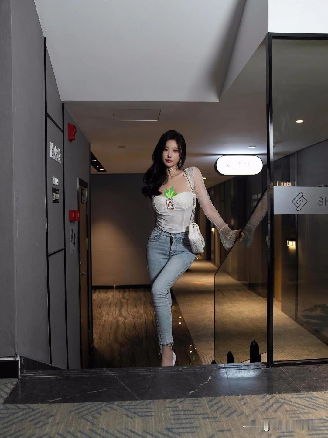 杨晨晨,瞧这绝美搭配,杨晨晨身着白色蕾丝,搭配经典牛仔裤,清新甜美又不失时尚感,