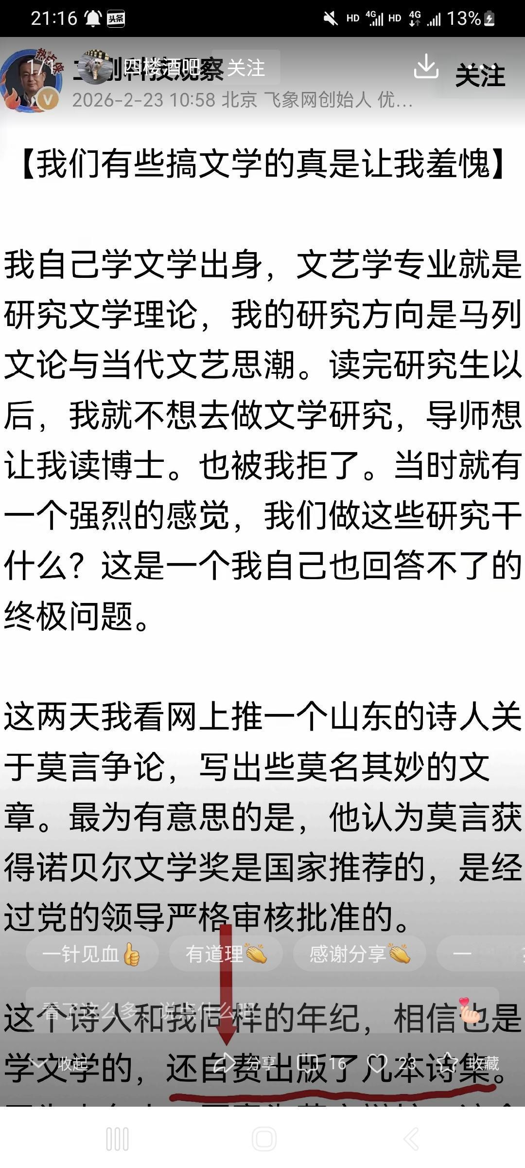项立刚的确文学水平高,能对莫言进行批判,我想他应该找到解决莫言问题的有效之策了。