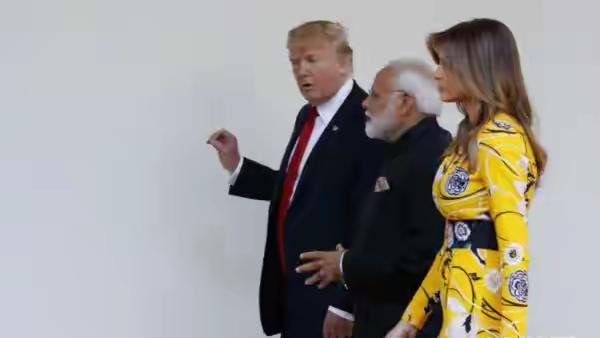 特朗普和莫迪合影,都是男人,但他们大不同。特朗普一生结过三次婚,妻子个个都貌美如花,而莫迪一生只结一次婚,因为他禁欲,他和妻子有名无实,两人至今都未圆房。
