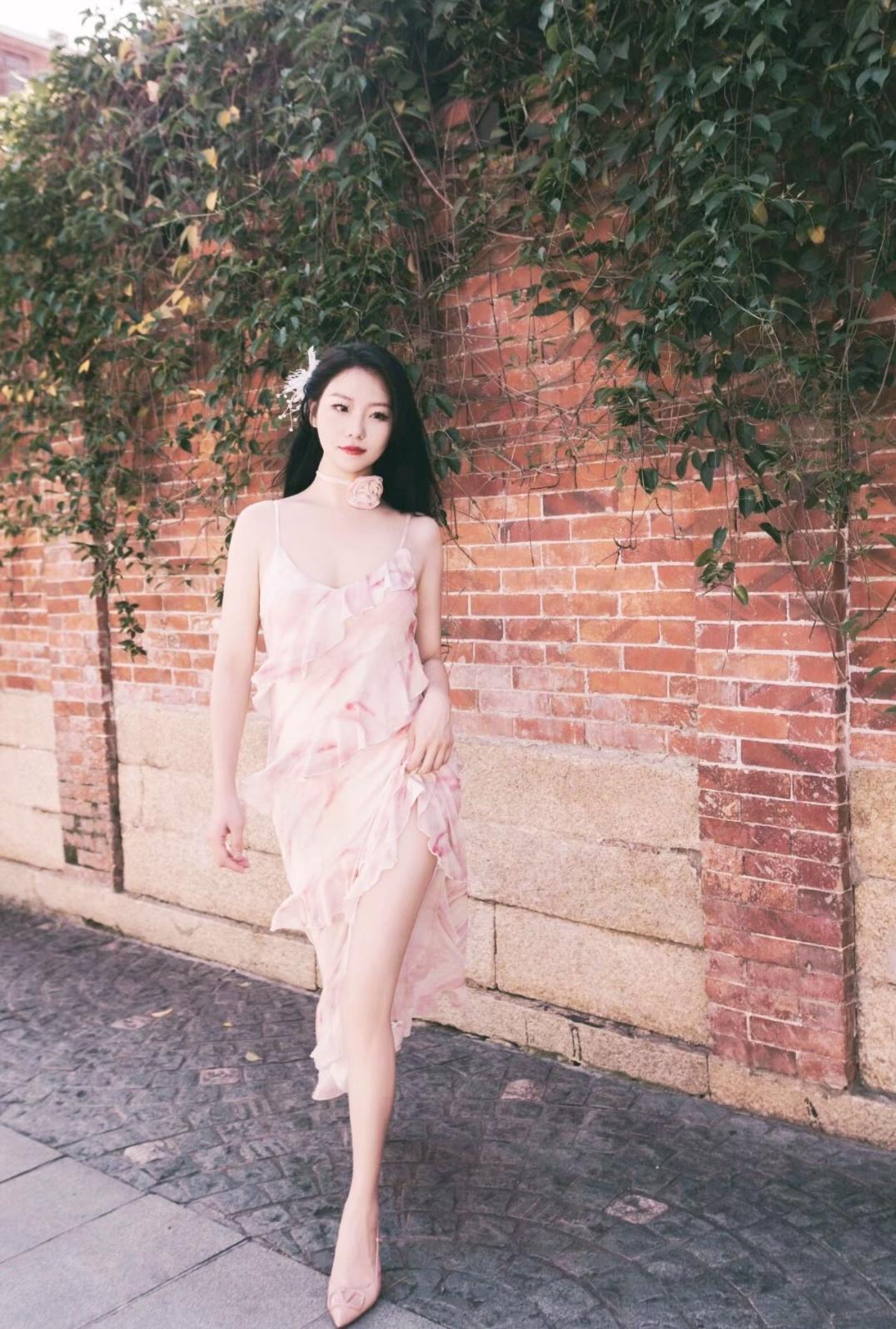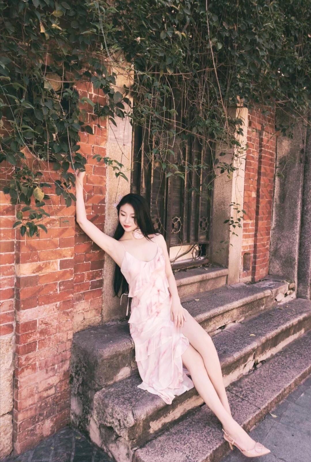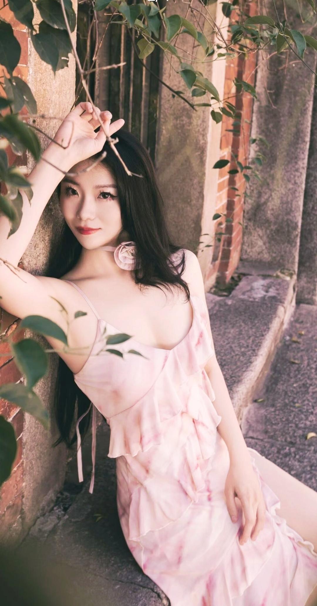 夏日午后,粉裙少女倚墙轻笑,绿意盎然,浪漫满溢。🌸💐🌿晒图笔记大赛 你心中的美女啥模样 怎么搭配衣服漂亮可爱甜美?