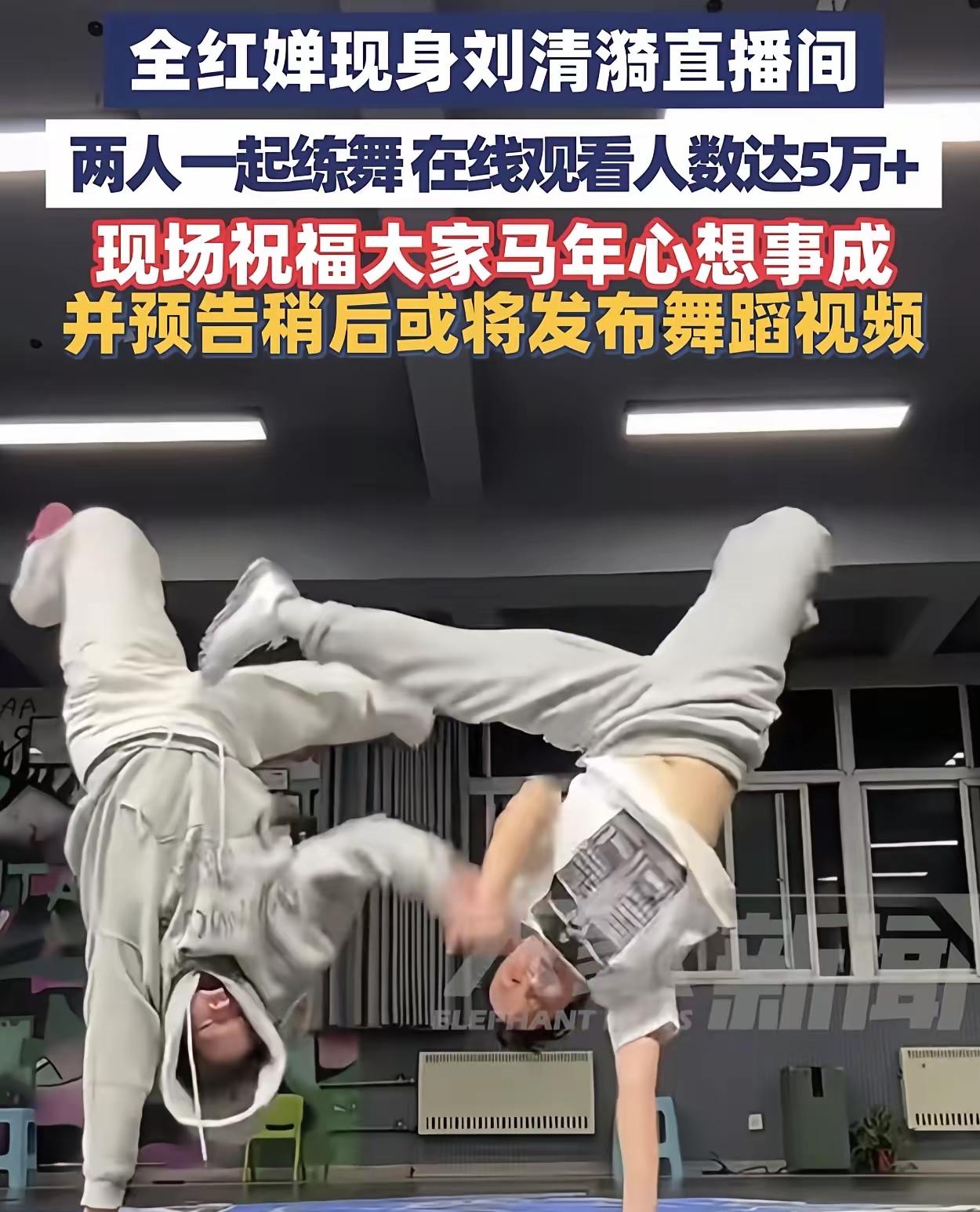 全红婵玩起了直播跳舞! 全红婵新年返广州,26日晚与刘清漪同框直播,一起练习街舞