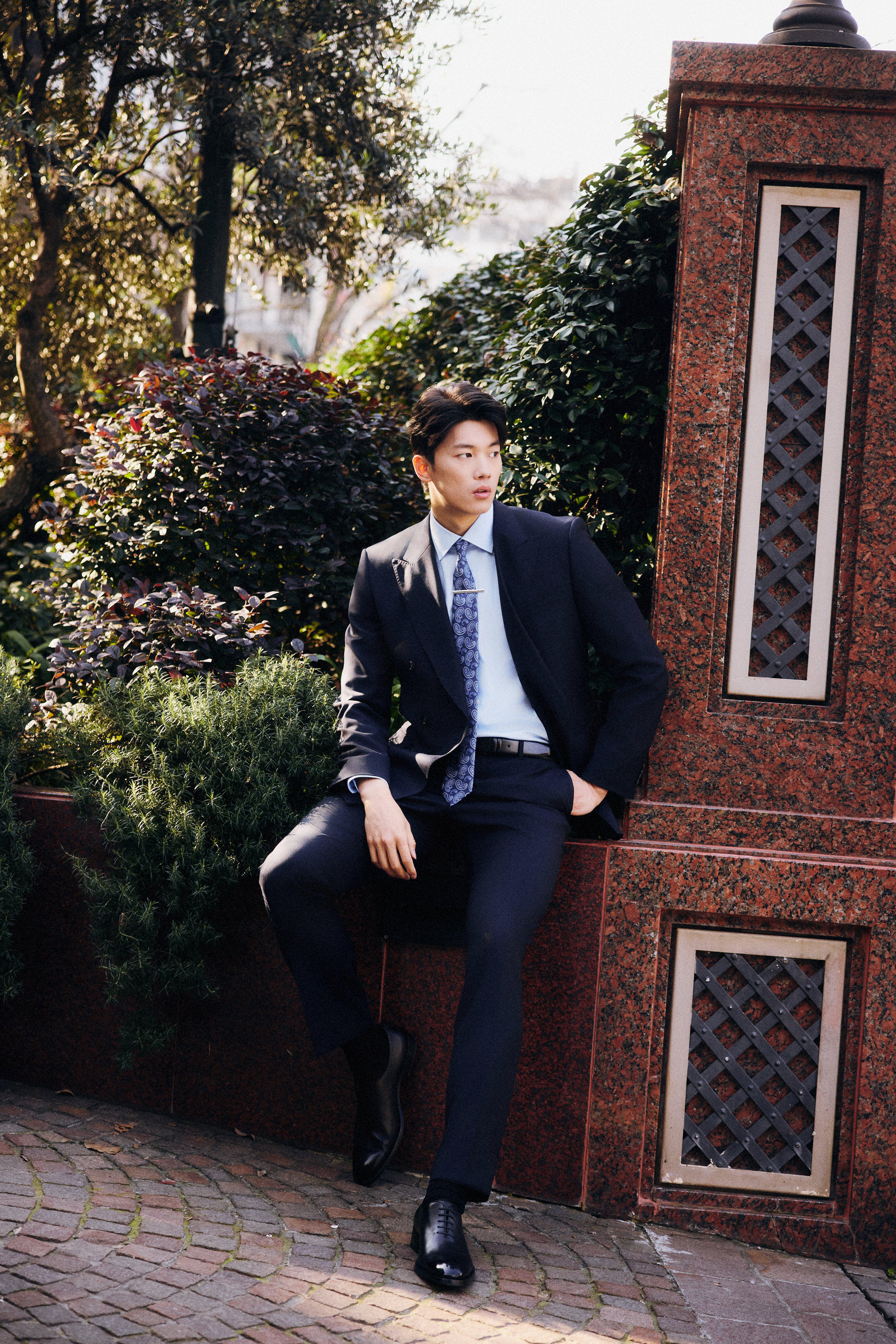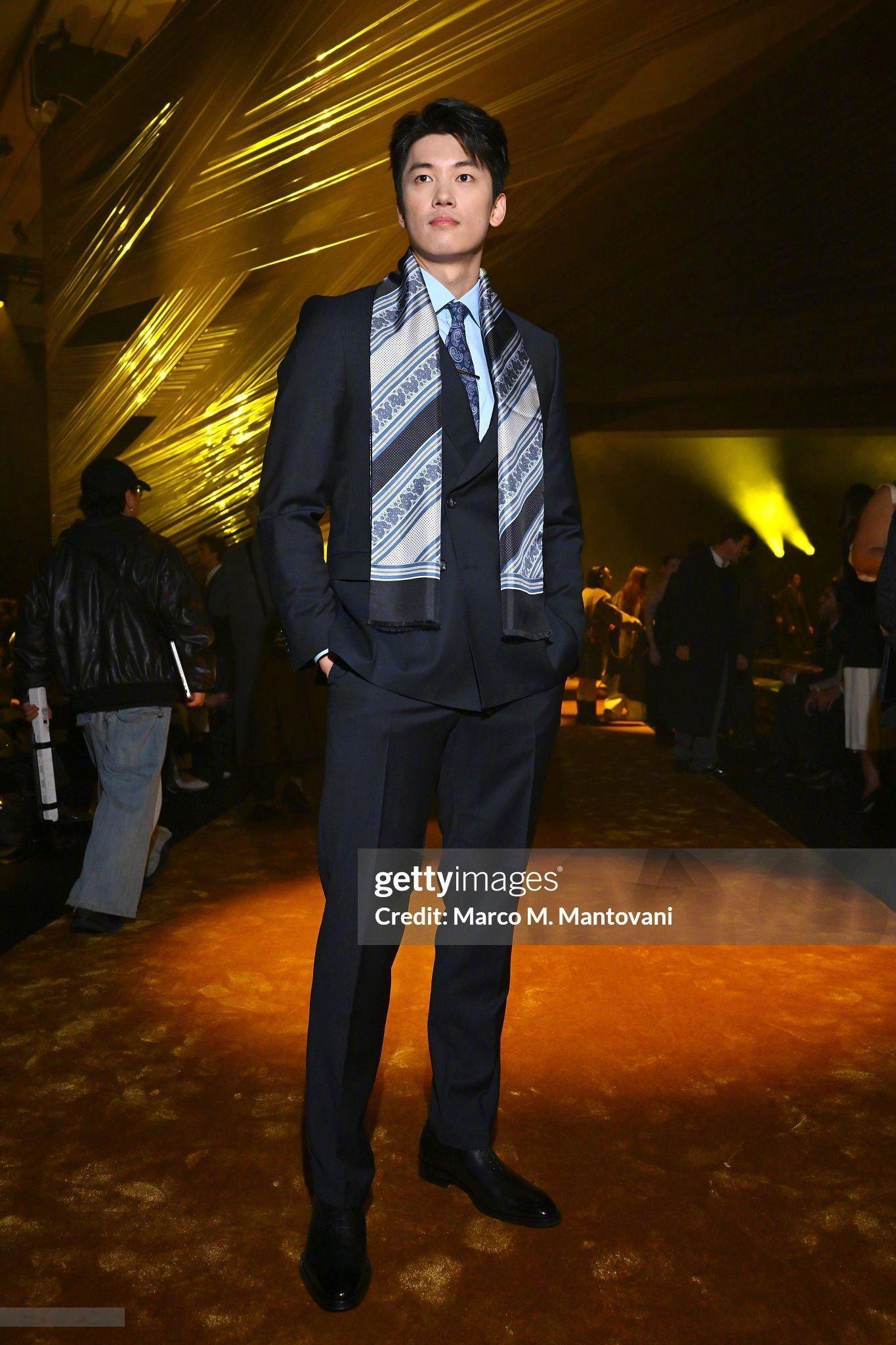 代言人亮相 BOSS 2026秋冬新季时装秀,一袭深蓝色双排扣西装搭配花卉领带与印花丝巾亮相,男模即视感,完全正装精英,真正的'BOSS'级别!✨时装周米兰时装周