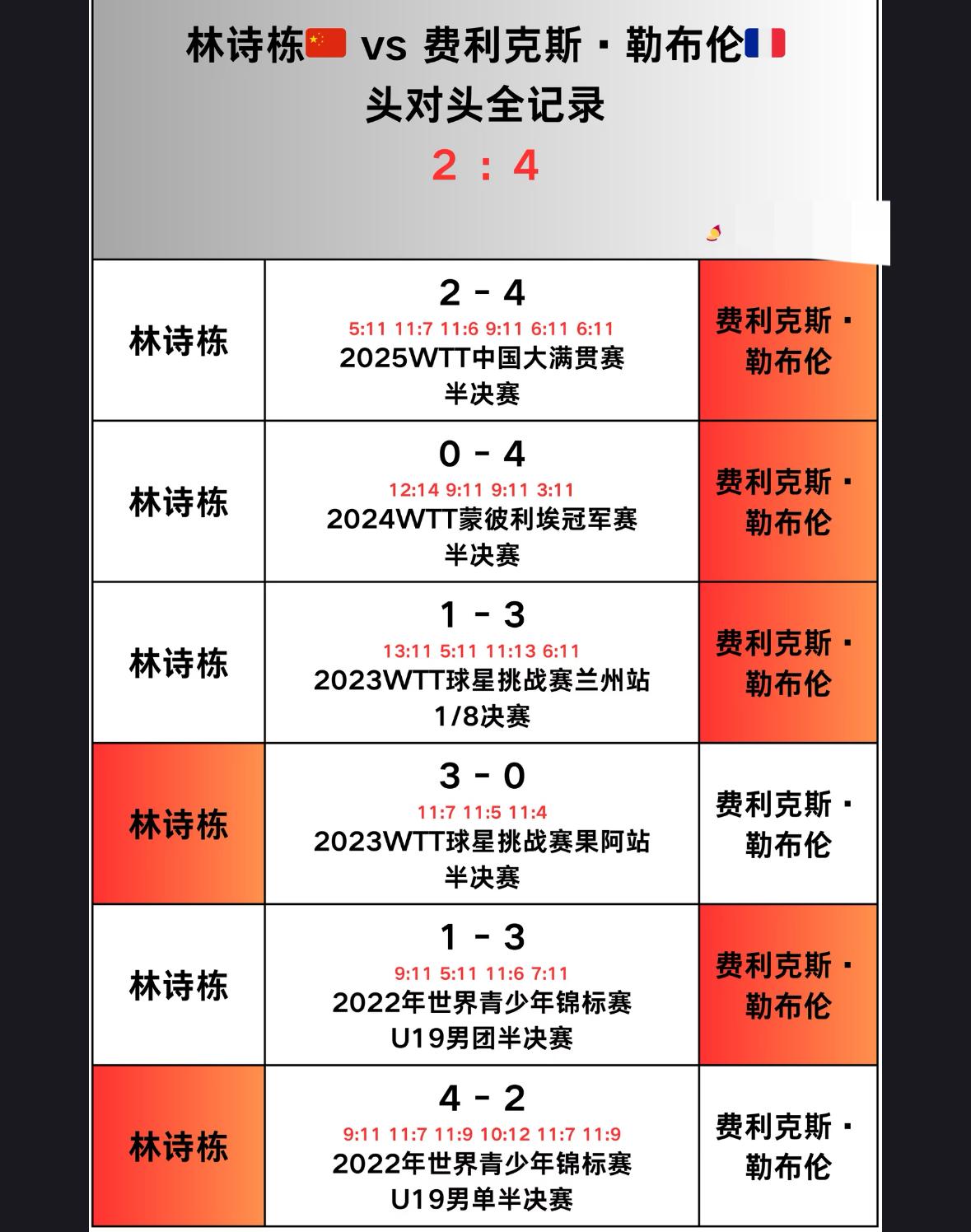莱维谈林诗栋想赢小勒布伦必须做到这几点: 不退台,钉在近台, 别退到中远台,那是小勒布伦的舒服区,在近台跟他拼速度,拼衔接! 再有就是多打正手,打他的正手, 小勒布伦的正手相对较弱, 多调动他的正手位! 还有就是发球多变, 抢前三板,不能让他舒服上手, 打乱他的节奏! 最后还是关键分敢出手, 放下包袱,不能想赢怕输, 特别是9:9,10:10这种比分, 必须果断上手! 2026新加坡大满贯男单1/4对阵 林诗栋VS小勒布伦, 这两年小勒布伦涨球很快, 不过还是希望林诗栋赢, 小石头最近输的心气都快没啦! 但林诗栋打小勒布伦肯定不好打, 特别是看了小勒布伦3:0科顿的比赛,18分钟结束,太快! 科顿可是连赢杜达和周启豪, 所以真替林诗栋捏一把汗…… 小石头加油拼起来!
