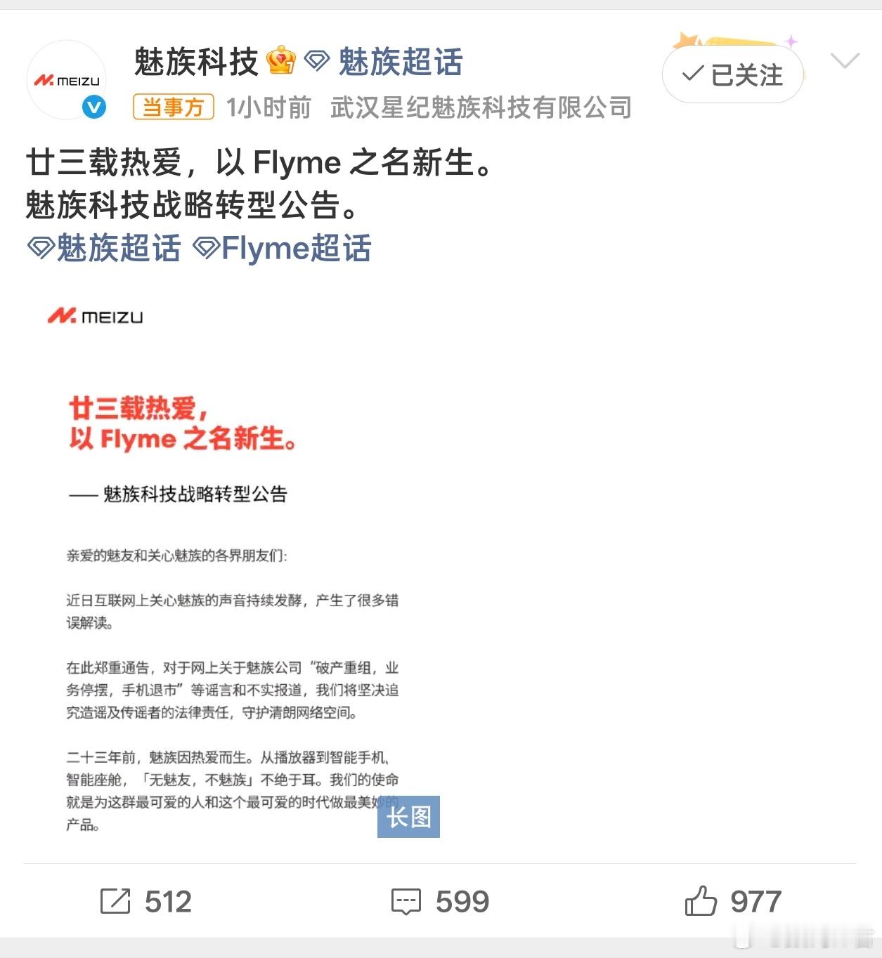 魅族公告:暂停国内手机硬件自研,转向AI软件生态,打造Flyme开放系统及AI能力基座,为多行业终端赋能;原有业务及用户权益不受影响。尘埃落定…