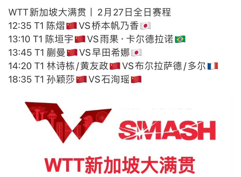 新加坡大满贯比赛,孙颖莎2大考验来了, 莎莎赛后眯着眼,眉头舒展,嘴角自然上扬, 2大考验过后就能够半决赛了,冲击奖牌。 第一考验,今日1/8决赛,孙颖莎对战队友石洵瑶,冲击8强。 石洵瑶2001年出生,7岁开始练球,是00后核心新锐,曾2026年初连夺WTT马斯喀特站女单卫冕冠军,实力雄厚。 她和莎莎是队友,就因彼此熟悉打法,所以胜负难料。 第二考验,如果孙颖莎顺利赢下队友,她下一轮对手是蒯曼和早田希娜的胜出者,都是强劲的实力派选手! 只有,通过这两大考验,才能晋级4强,冲击奖牌。 莎莎能够顺利晋级女单四强吗?我觉得,一定可以,她是世界第一,从不令人失望!