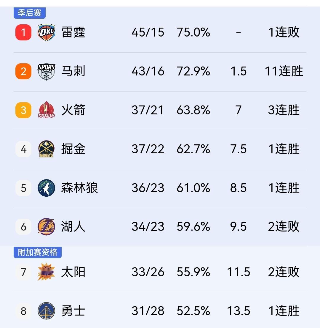 马刺126-110篮网,豪取11连胜,与西部第一雷霆只差1.5个胜场! 马刺同篮网的比赛应该是今天所有比赛中最没有悬念的一场,事实也是如此,马刺客场126-110轻松战胜篮网。 本场比赛,马刺凭借首节打出的一波36-22奠定胜局。篮网余下的比赛也没有过多的抵抗,马刺方面主力球员大都早早打卡下班,因而得分普遍不高。 文班亚马出场25分钟,得到12分8篮板,尚帕尼26分为马刺队最高,篮网的波特得到25分14篮板,夏普11分14篮板,特劳雷13分。 凭借本场比赛的胜利,马刺已经豪取11连胜。由于近期雷霆表现持续低迷,因而他们的领先优势只剩下1.5个胜场。目前来看,赛季结束,被马刺取而代之应该是早晚的事。 还有一个悬念,哪支球队能终结现在已经取得11连胜的马刺呢? 马刺未来10场比赛:尼克斯、76人、活塞、快船、火箭、凯尔特人、掘金、黄蜂、快船、国王!