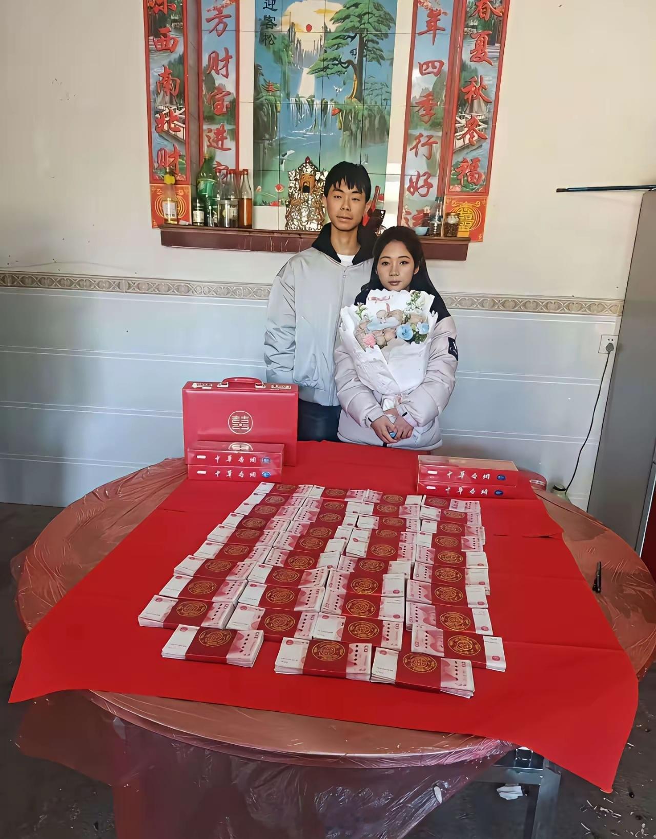 小伙子抱得美人归本应开心才是,但一脸苦逼相,等还清借款估计只剩半条命了!