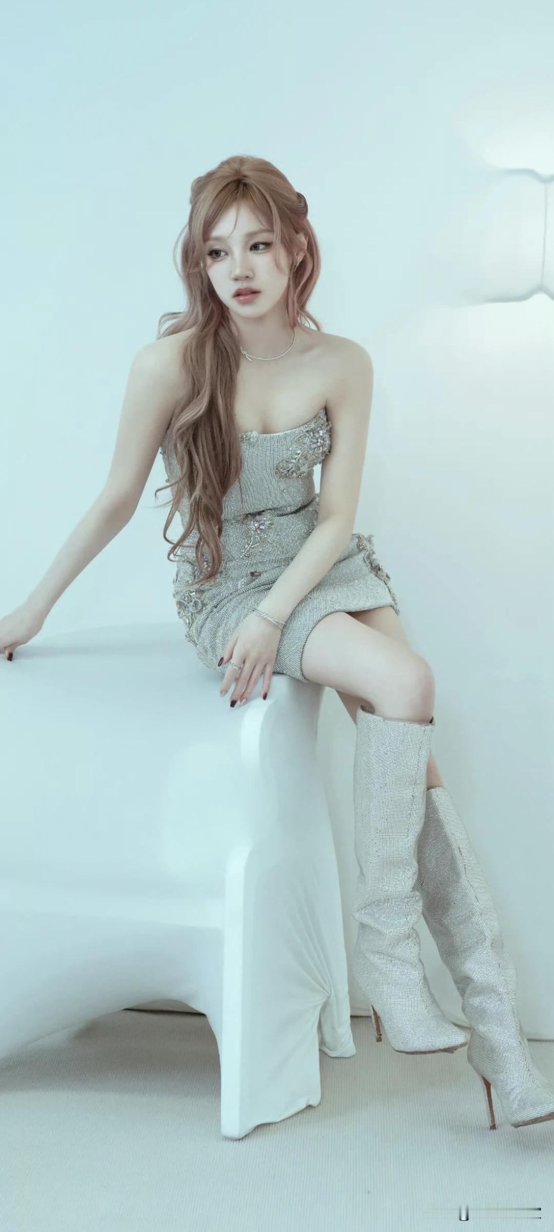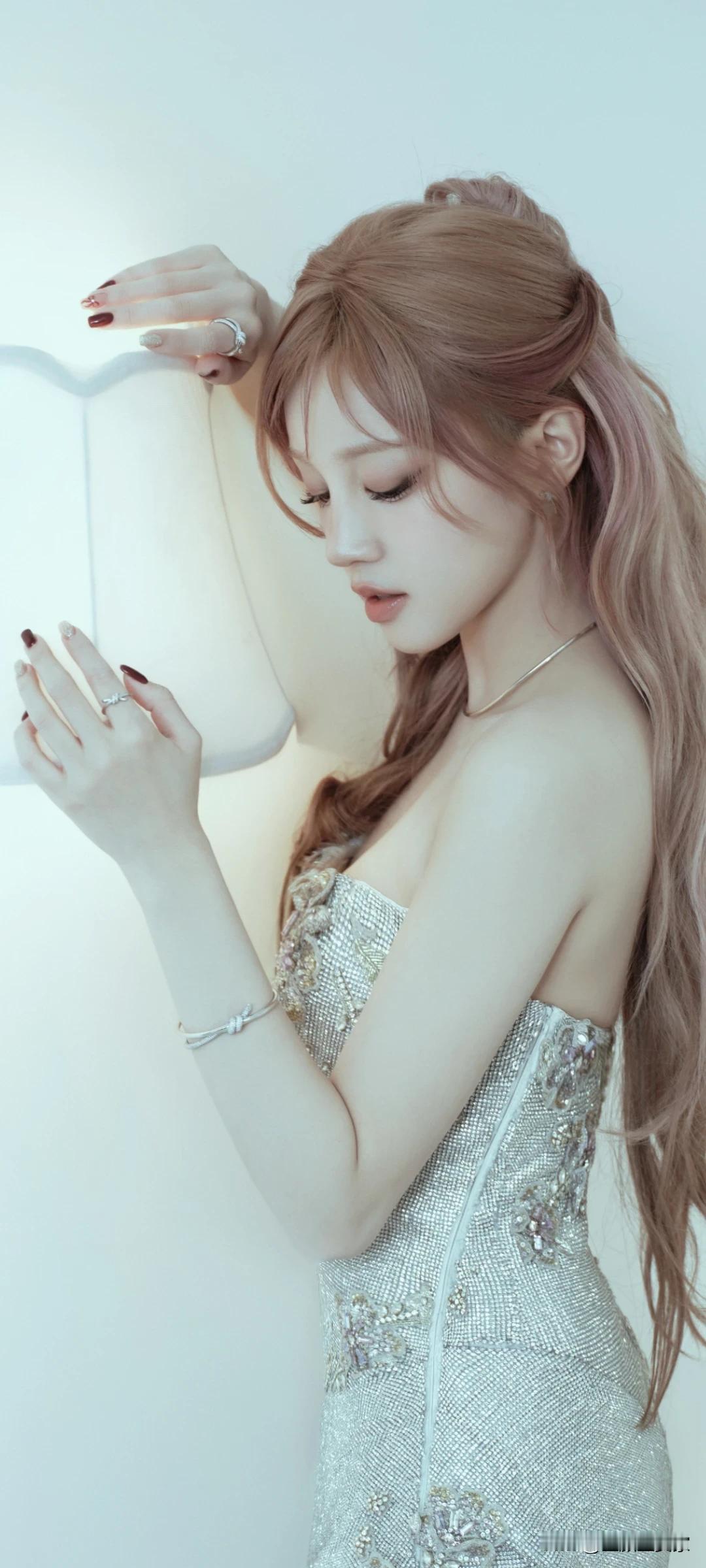 宋雨琦写真壁纸~抹胸裙+温柔卷发,慵懒又精致!