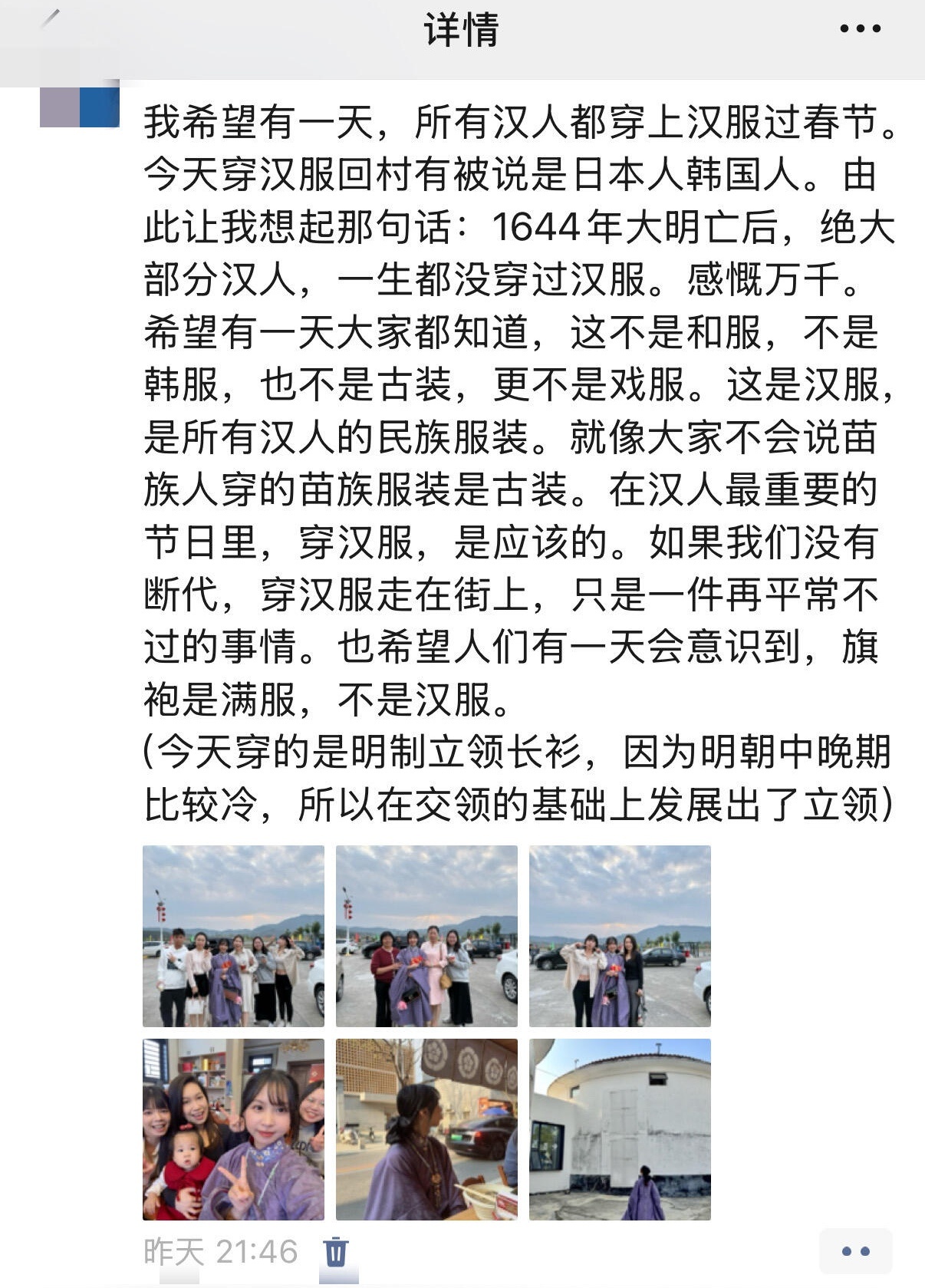 小姐姐:“穿汉服回村被当成韩服和服”几千年衣冠上国,礼仪之邦,却不认识了自己的衣冠了,不过现在也开始好起来了,不然也不会有那么多苍蝇🦟急得嗡嗡叫。