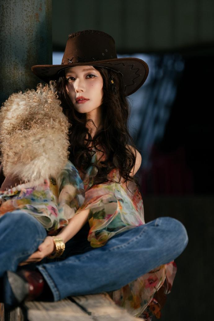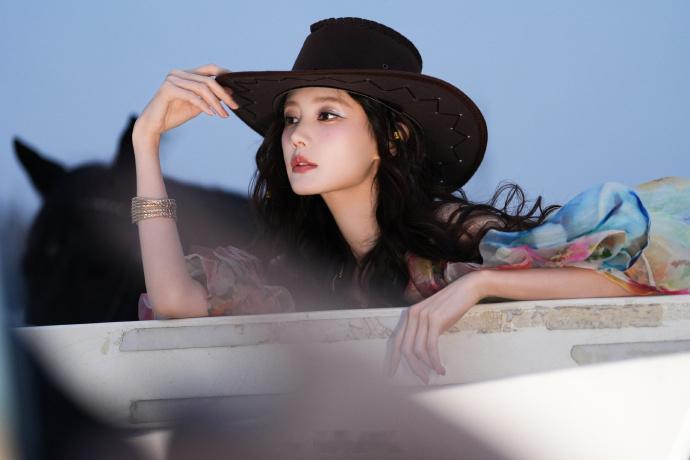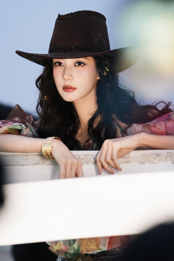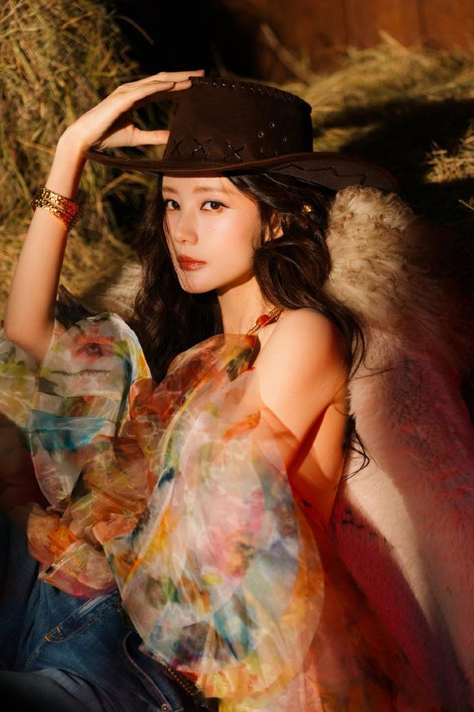 彩纱裙配牛仔帽、灵动复古俏皮野性——李一桐。每日明星美图分享