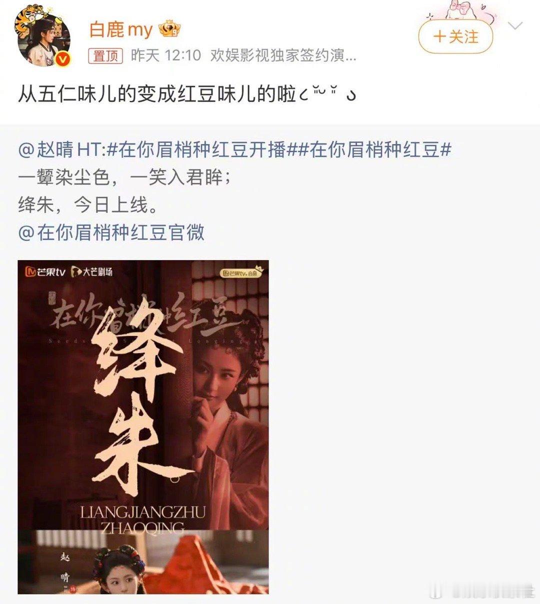白鹿宣传赵晴在你眉梢种红豆好姐妹贴贴,白鹿又来给赵晴新剧做宣传了,赵晴在新剧中也是萌萌哒一只好可爱啊😍