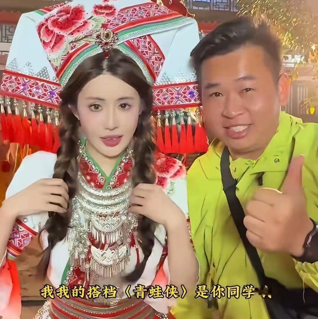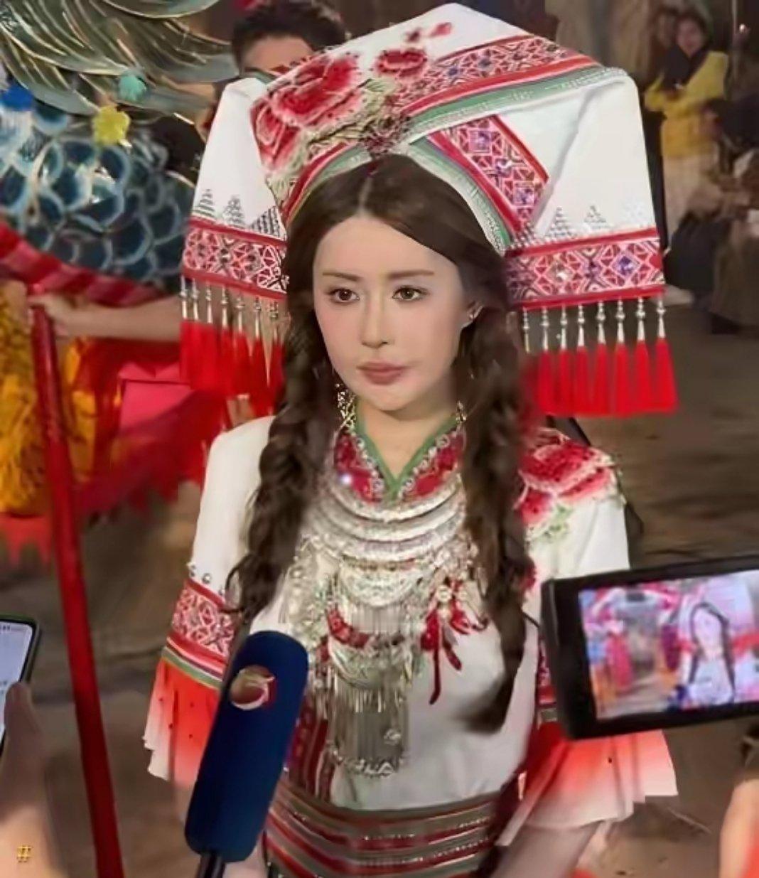 韦雪回宾阳炮龙节穿民族装扎麻花辫,真人状态和照片差距太大。