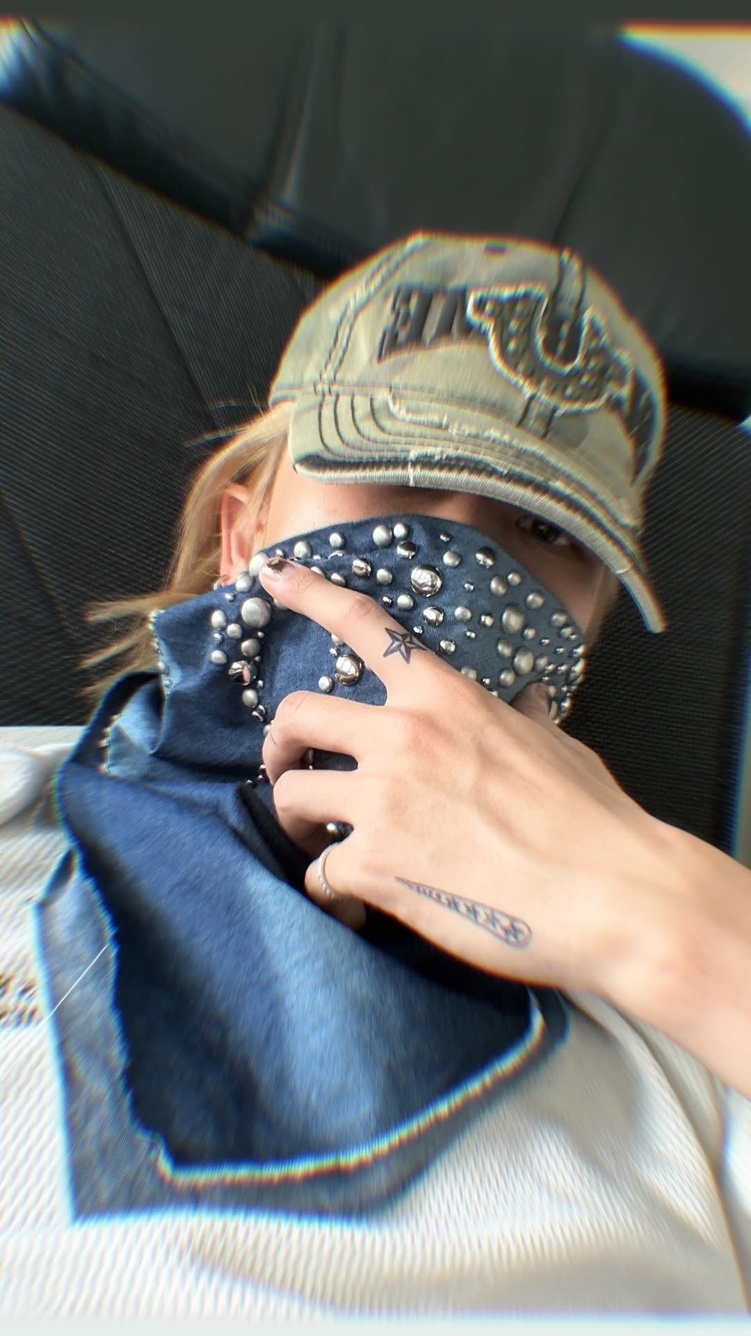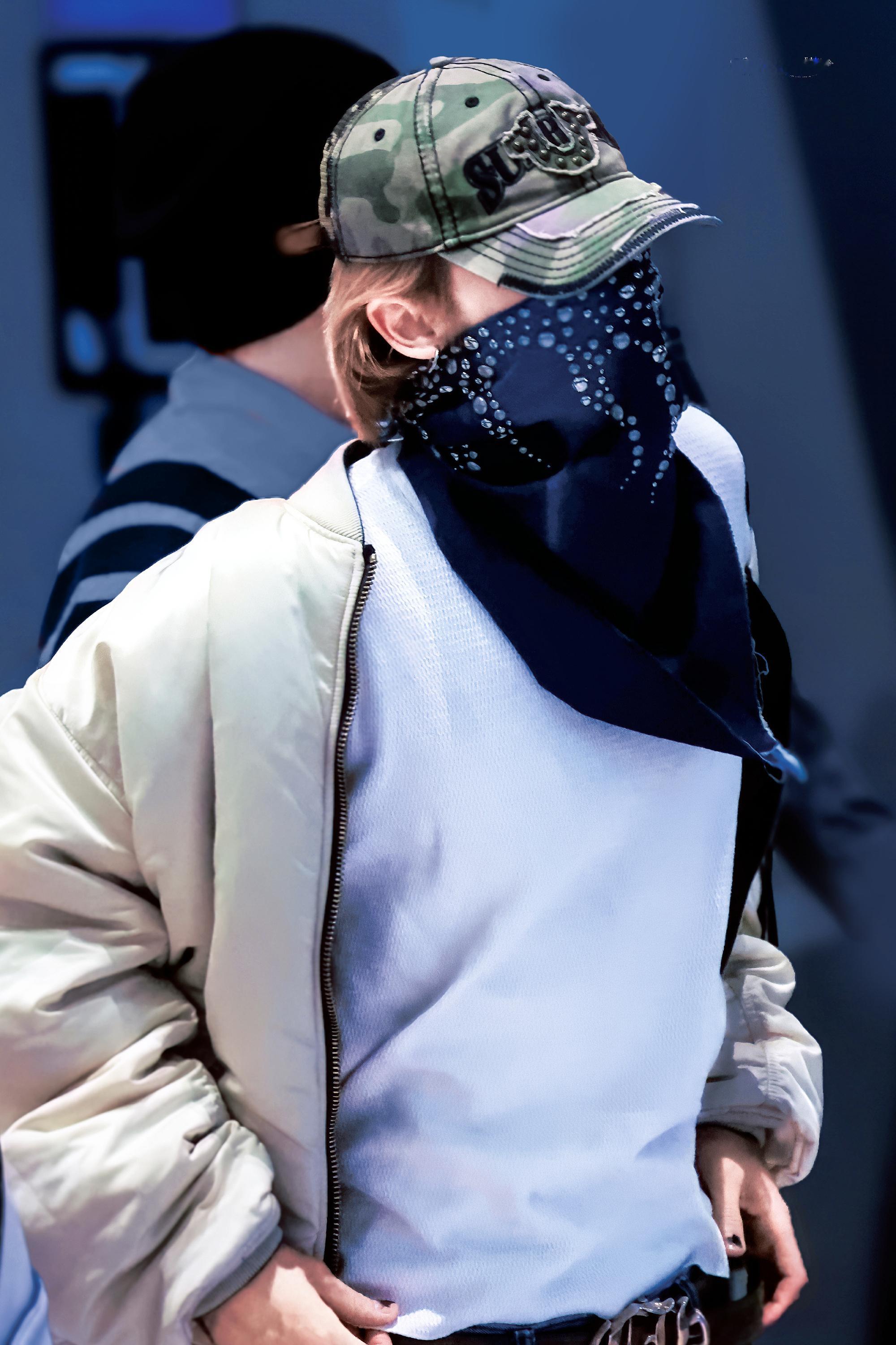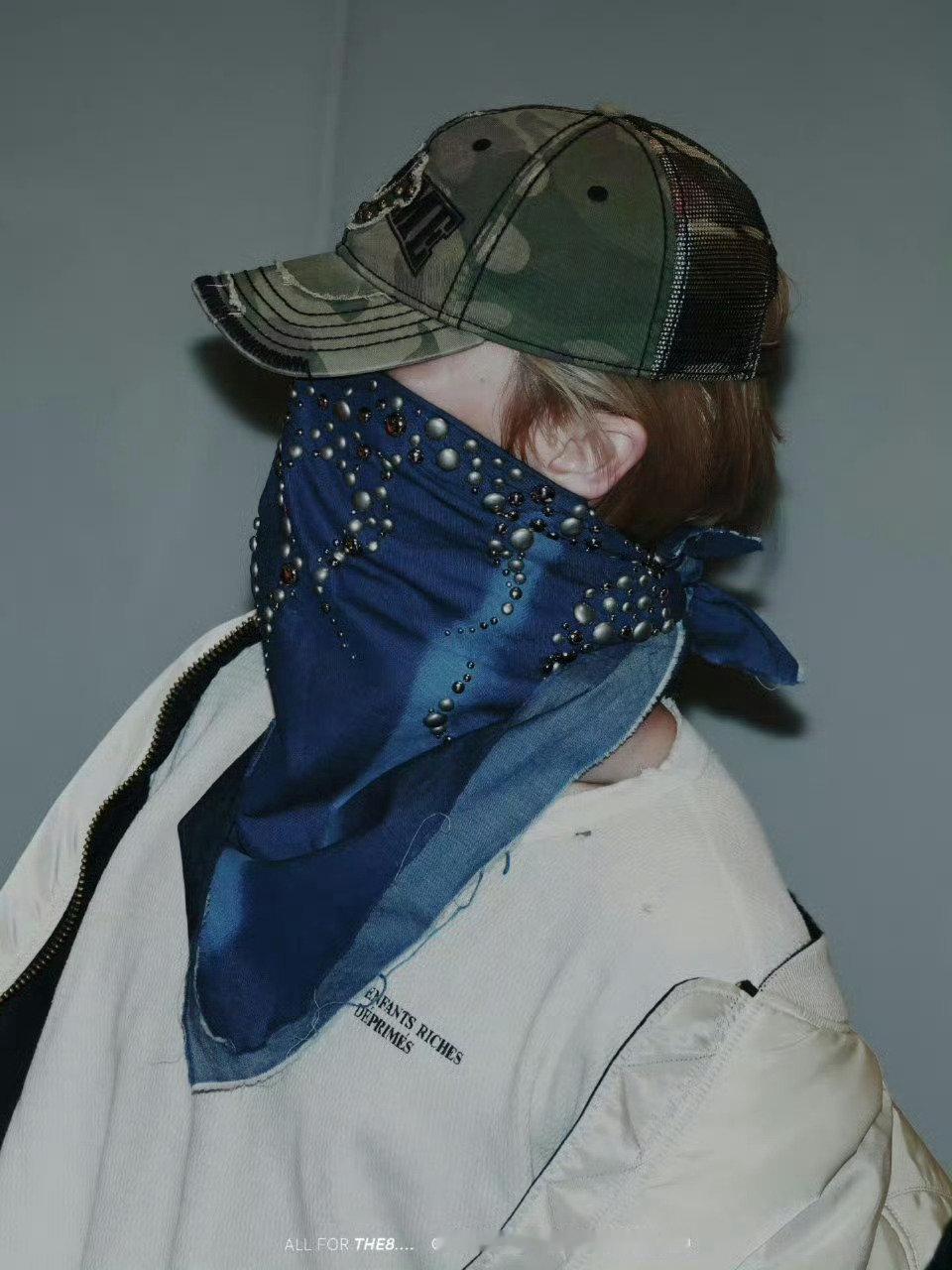 徐明浩蓝色铆钉丝巾蒙脸look