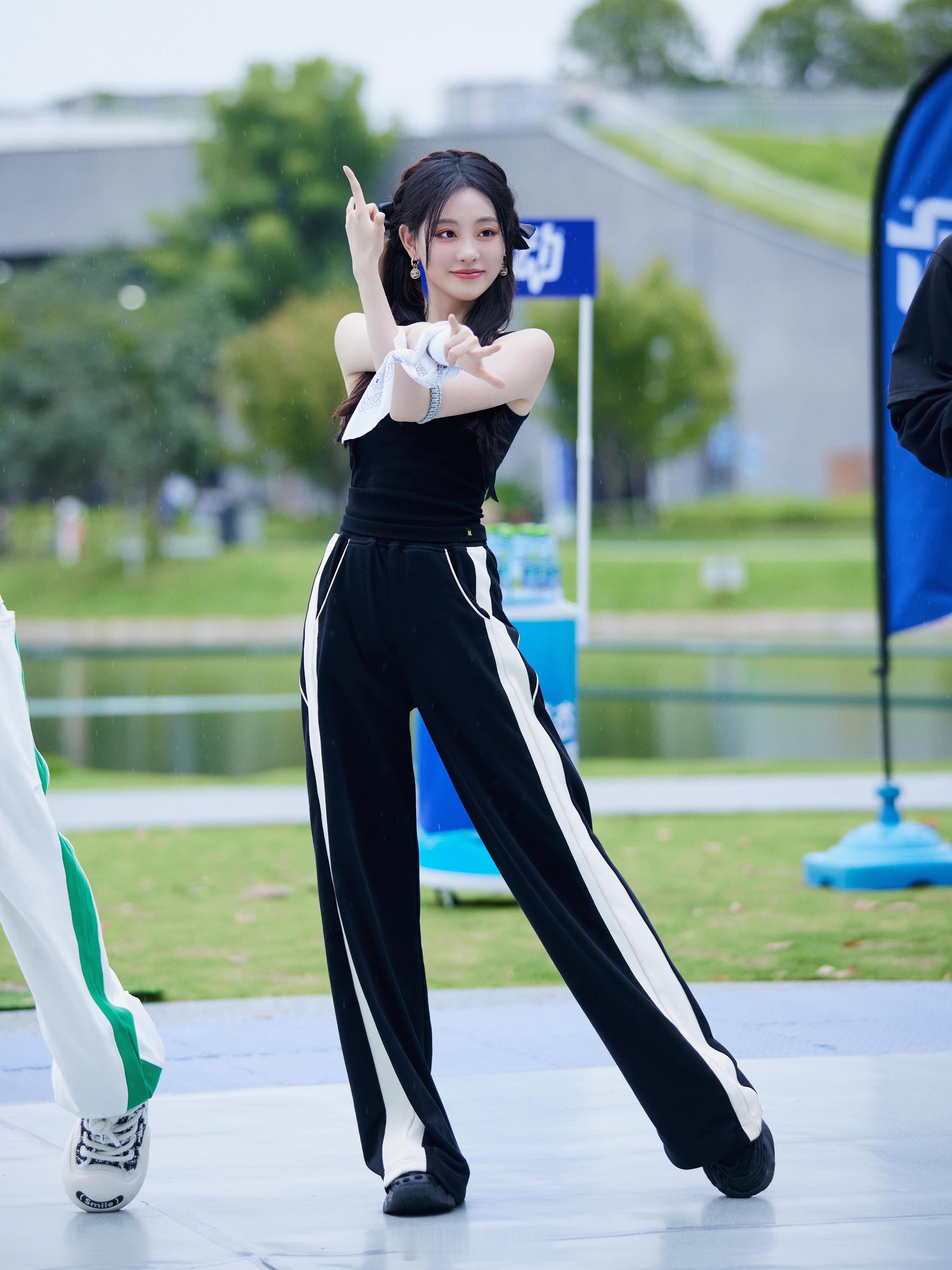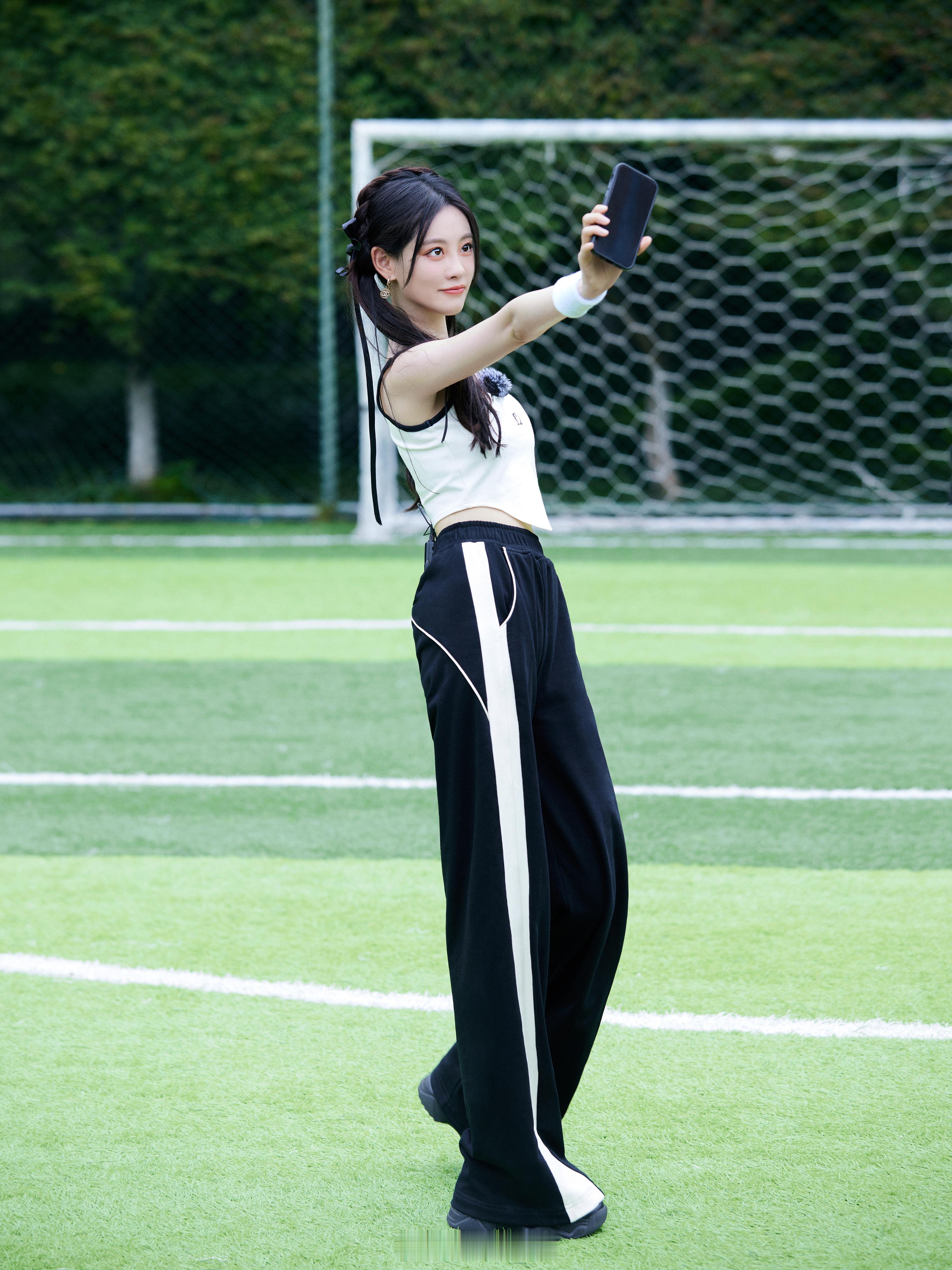 刘亦菲这条裤子挺养生,毕竟降温了肚脐眼必须护住啊