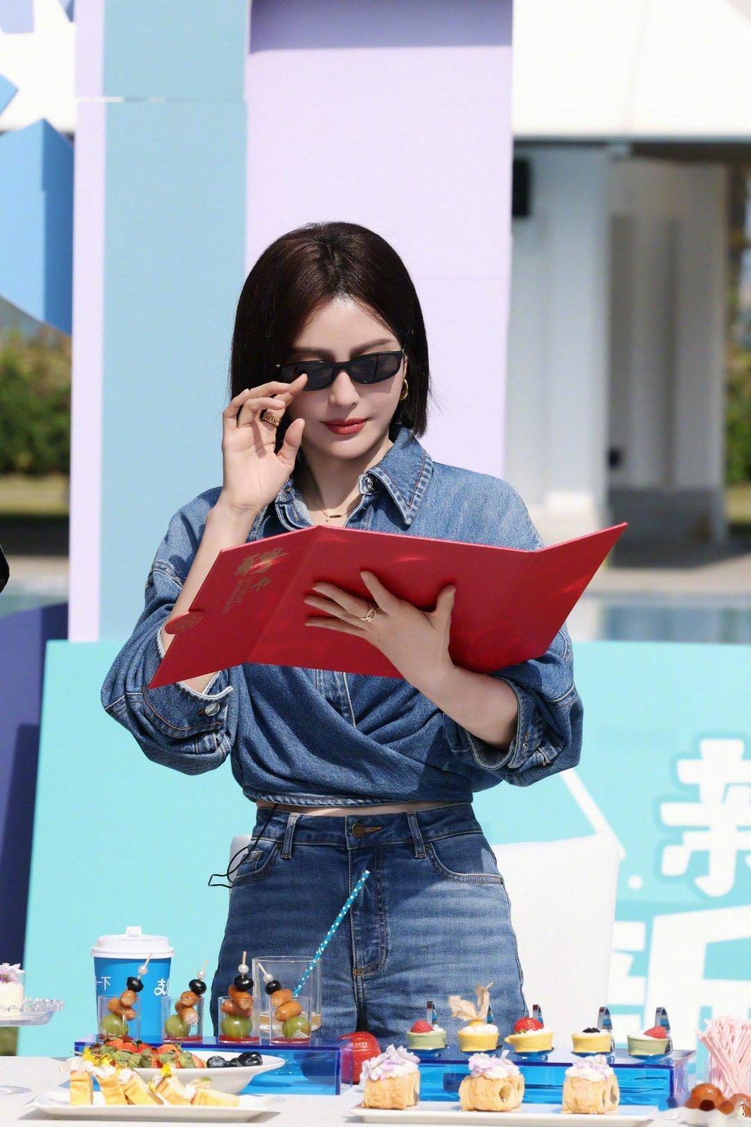 刘亦菲这条裤子挺养生,毕竟降温了肚脐眼必须护住啊