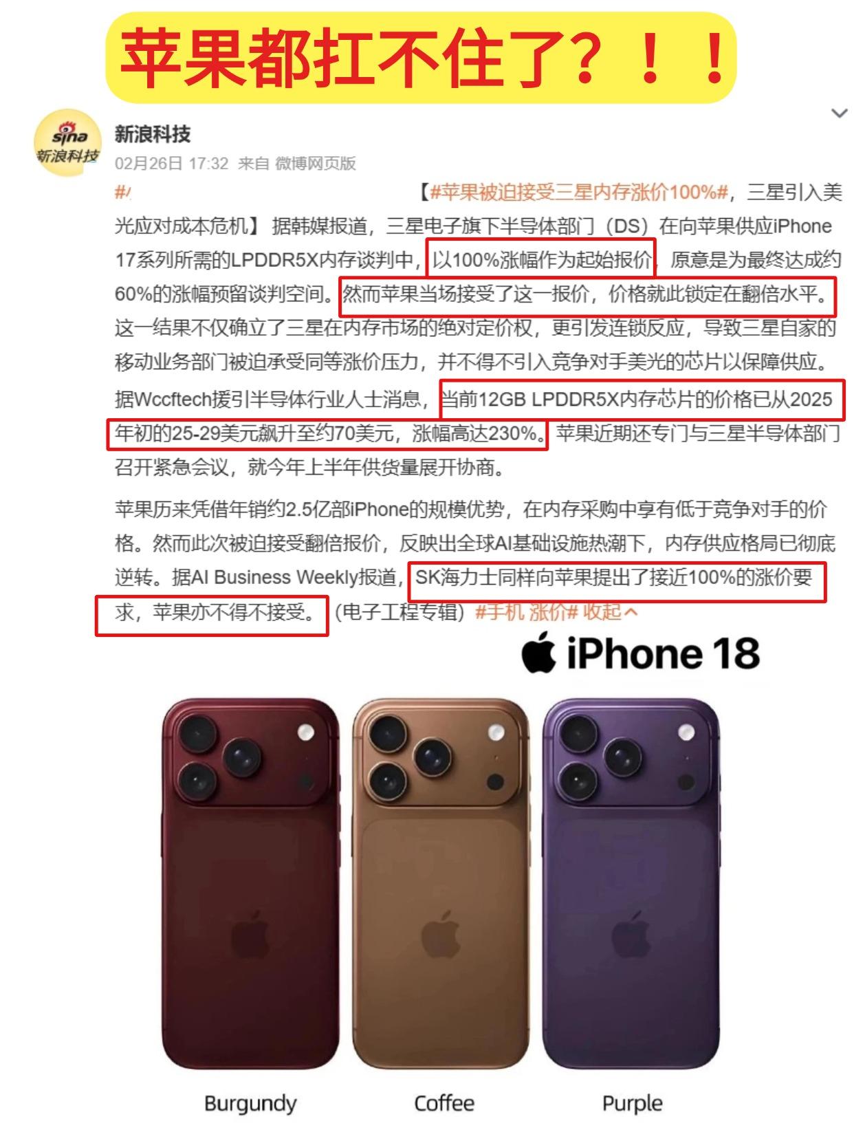 内存涨价,手机要遭殃了 一觉醒来,看到三星和苹果关于内存芯片要涨价100%的谈判
