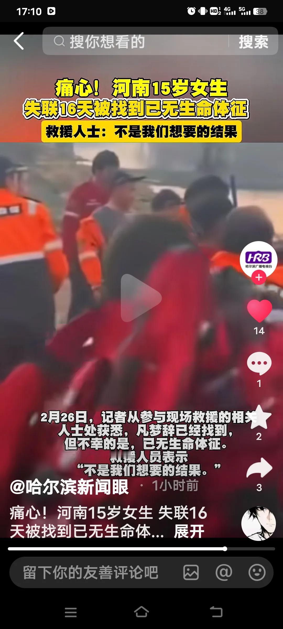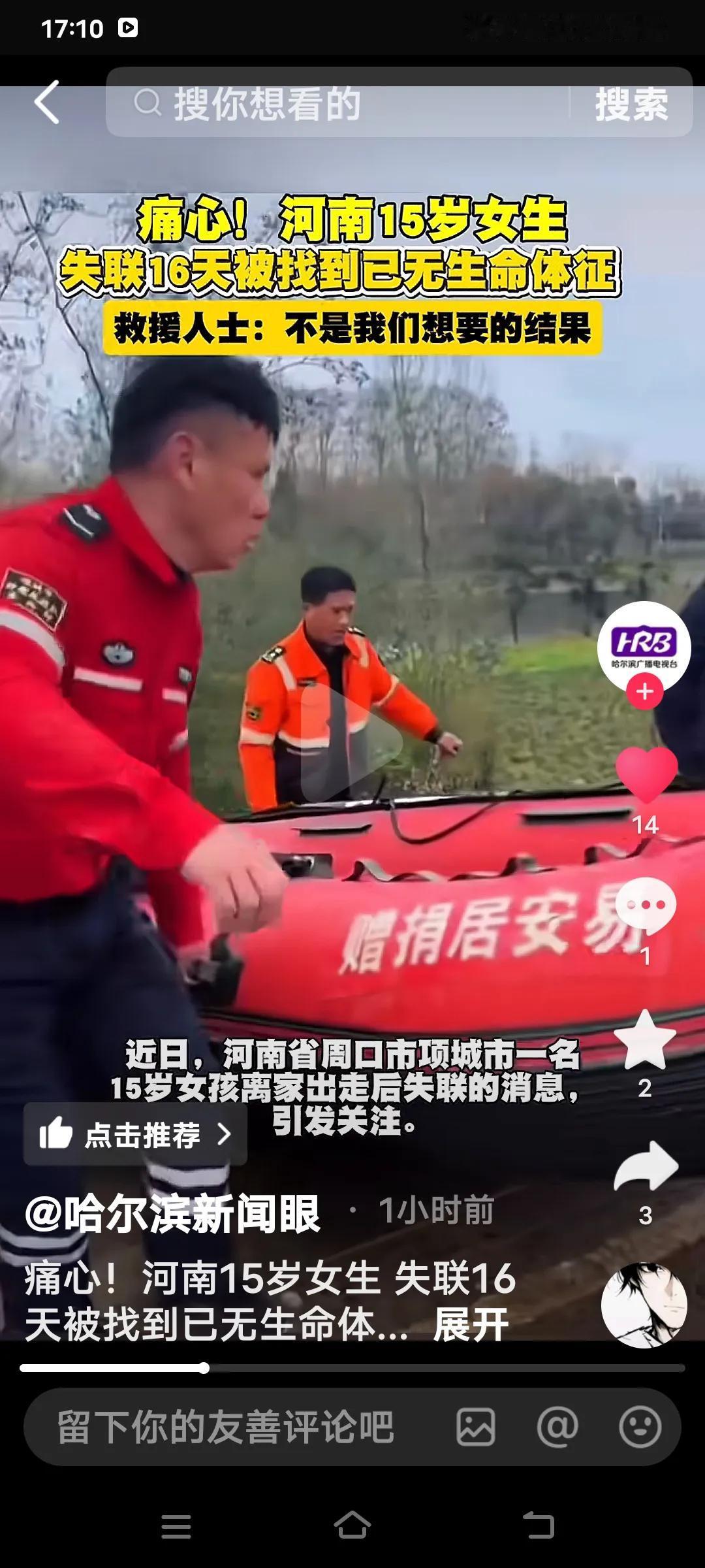 痛心至极!河南项城15岁女孩凡梦辞永远定格在了这个春天。2月10日,她与家人发生口角后失联。家人赶忙报警,并发动亲友和救援队全力搜寻。监控显示,她最后出现在丁集河堤附近。 2月26日,记者从参与救援的相关人士处得知,凡梦辞已被找到,然而回天乏术!搜救队员满是遗憾地表示,这不是他们期望的结果。 小孩子任性的后果,不仅让家庭陷入悲痛,自己也香消玉殒,实在令人扼腕叹息!00后失联女孩 河南失踪小女孩