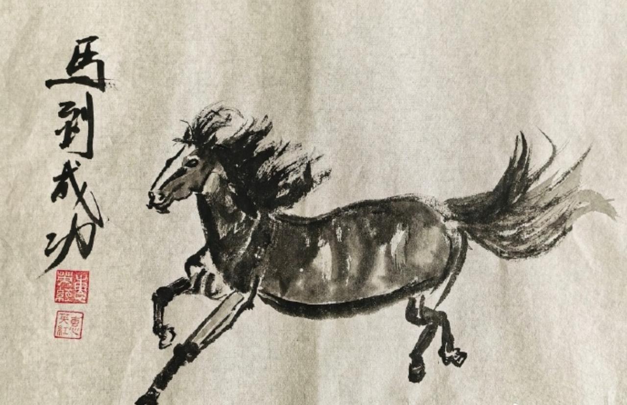 画里的骏马,鬃毛迎风飞扬,四肢矫健有力,笔墨间全是藏不住的奔涌气场。 配上“马到成功”的题字,刚好踩中票房大卖的好彩头。 完全不是业余随便画画的水平,这功底真的太绝了。 没想到红姐私下里还有这么一手绝活儿。 感觉都可以裱起来拿出去卖了吧。