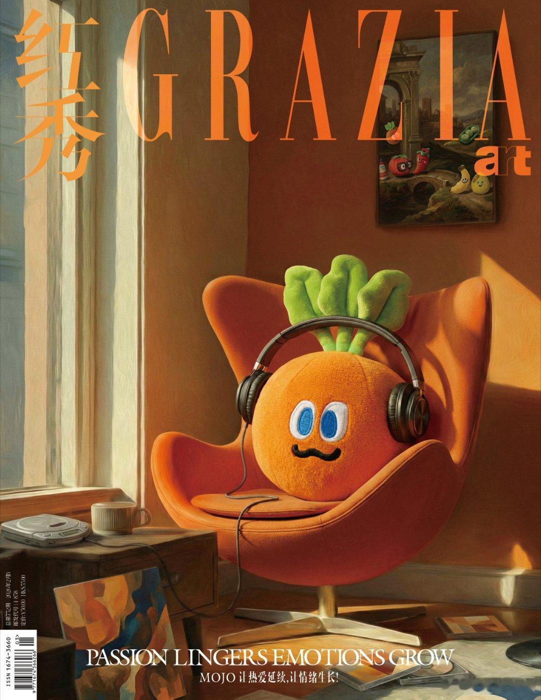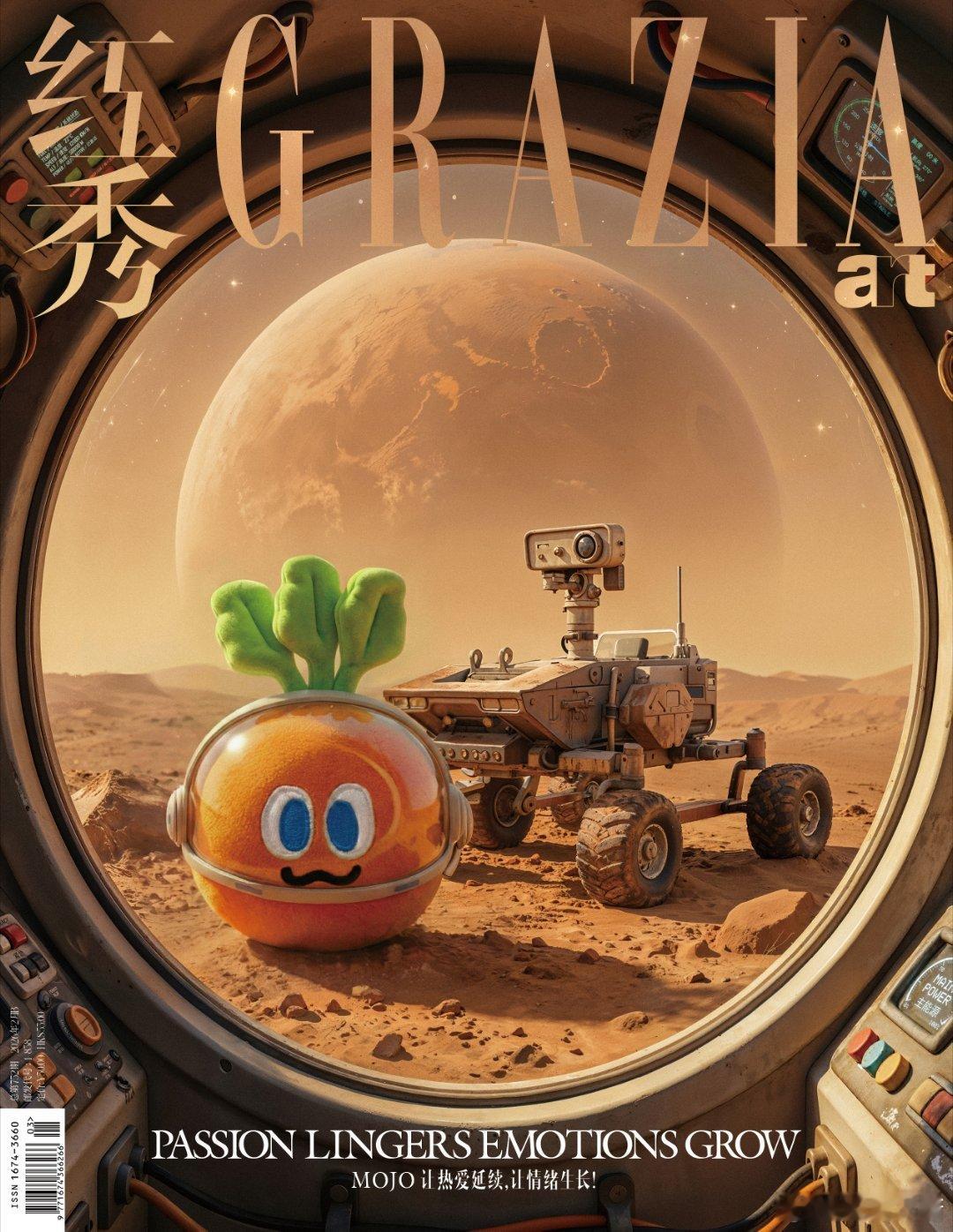 胡萝卜头戴着耳机陷进橘色沙发,声波在绒毛里织成慵懒的茧。外星车旁它咧嘴笑,火星尘埃都是宇宙撒的金粉。红秀卜卜首封